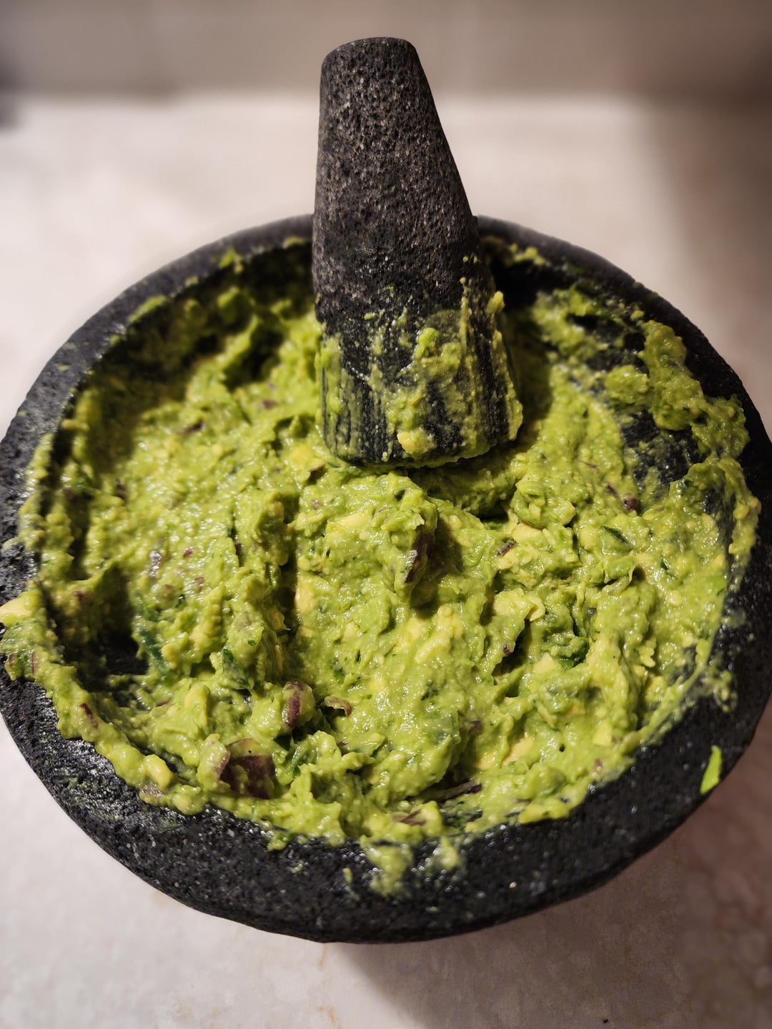 Made Guac for some friends. 4 Avocados, 2 jalapeños, half a Poblano, ~a third of a red onion, 2 tbsp cilantro, lime and salt to taste.by Bone_Shaman Write A CommentYou must be logged in to post a comment.