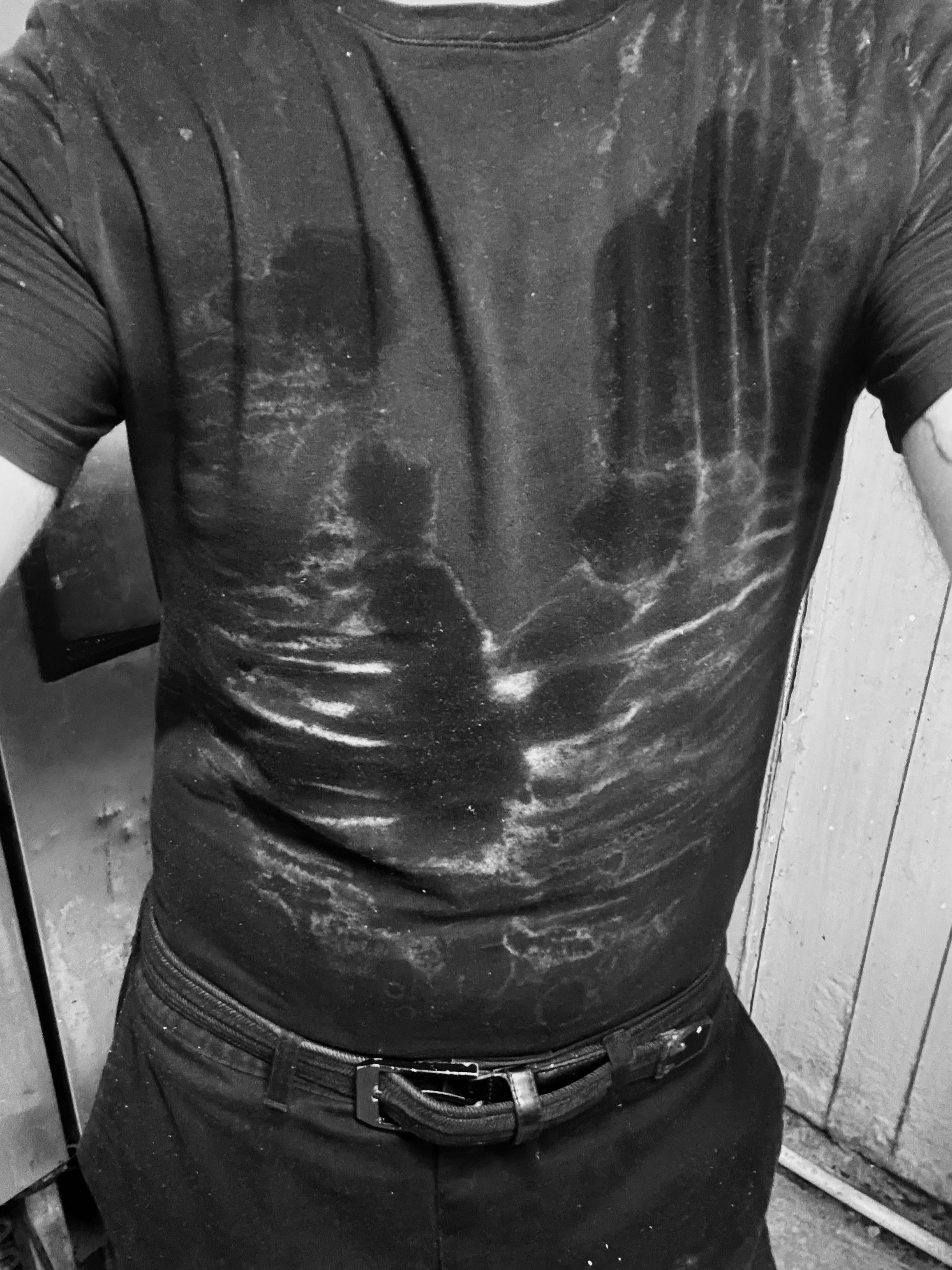 Sadly yes. through the tshirt, coat, and apron. Stay hydrated, keep a stash of pedialyte in your car if management doesn’t want to supply it for ya’ll