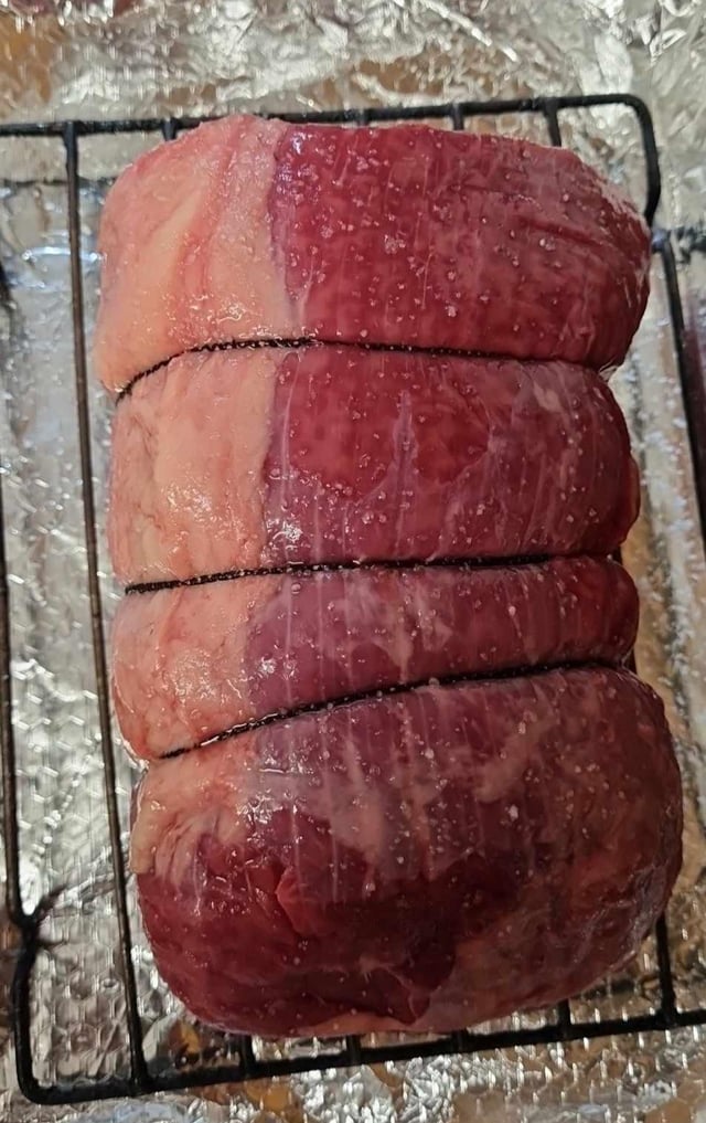 1.2kg. I cooked it for 20 minutes at 240°C, then 32 minutes at 160°C and let it rest before carving. A decent piece of beef.by Bumblebeard63 Write A CommentYou must be logged in to post a comment.