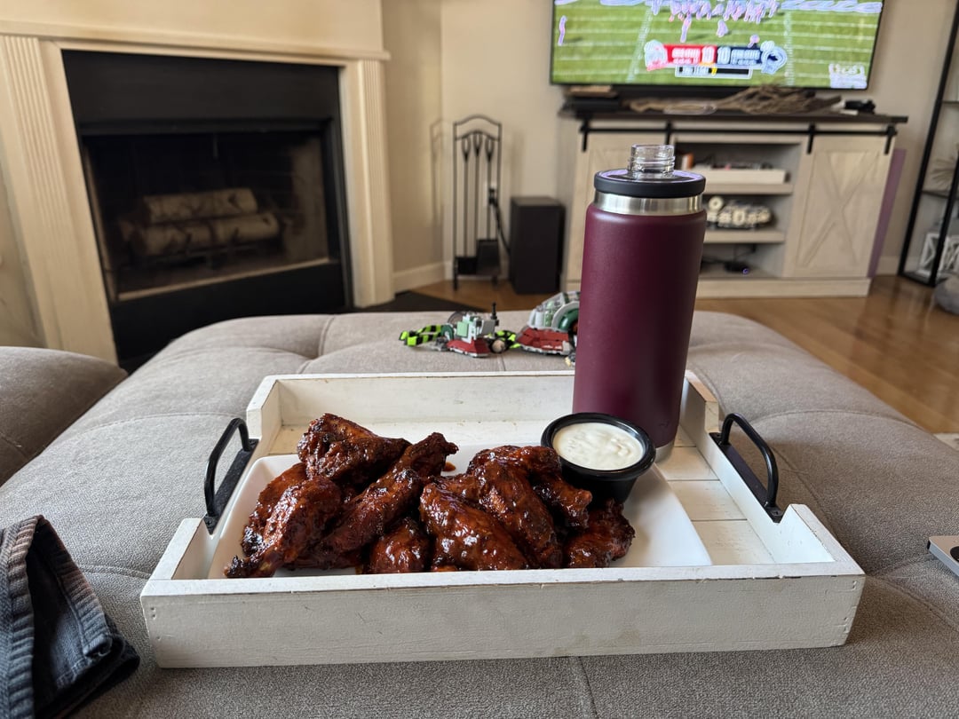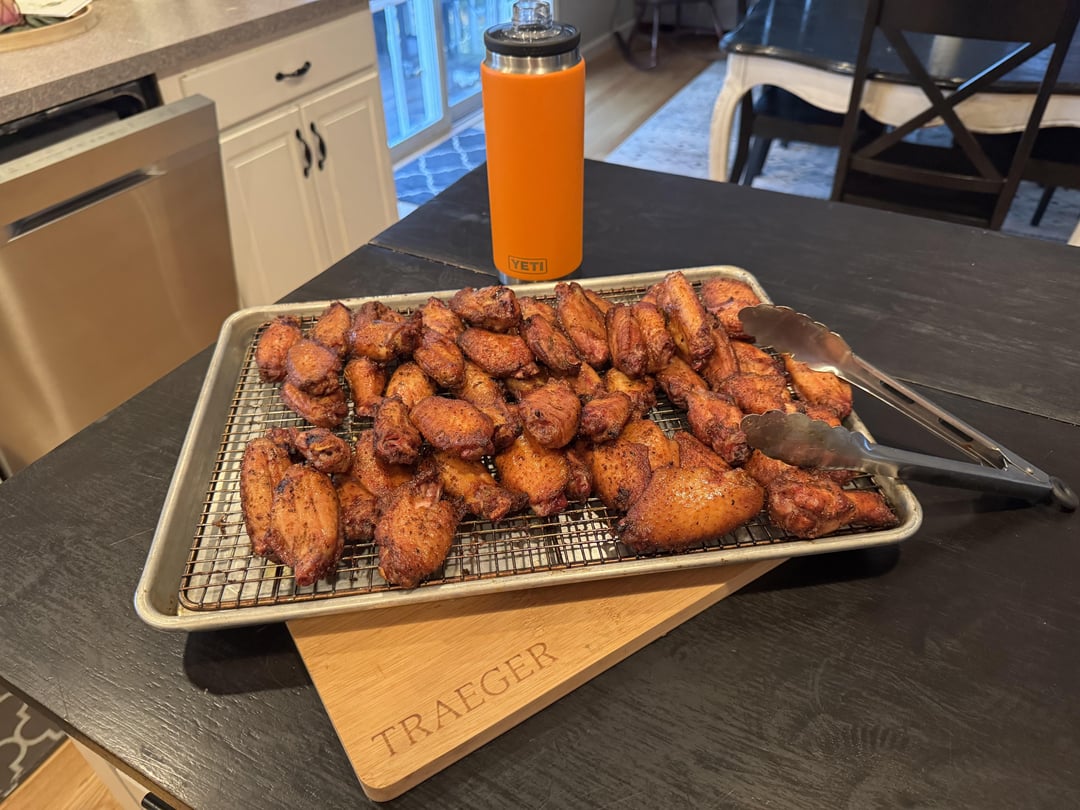 I buy them pre seasoned from the grocery store. I sauce mine after they are done in some butter, franks and sriracha. 0-400. 60 mins. Flip and rotate at 30.