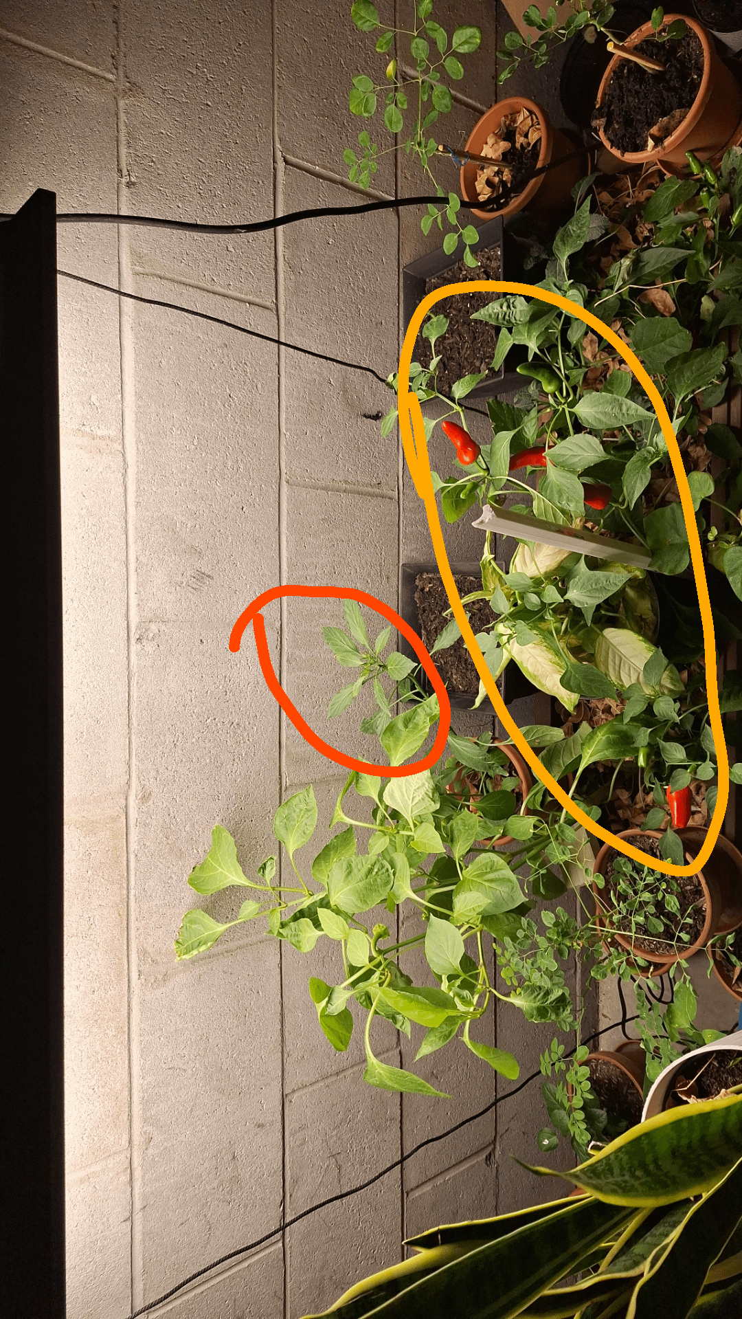 I planted jalapeños (orange circle) and bird's eye chillis early March but this is all I have left. I expected bird's eyes to be smaller and slimmer. Red circle is what I think might be bird's eye but won't be able to tell yet until it flowers. I have another bird's eye (second photo) that I grew separately/not close to the jalapeños and it already flowered. I'll wait to see if they accidentally crossed once the peppers are bigger. I just don't know of anyone can tell based off of the leaves alone