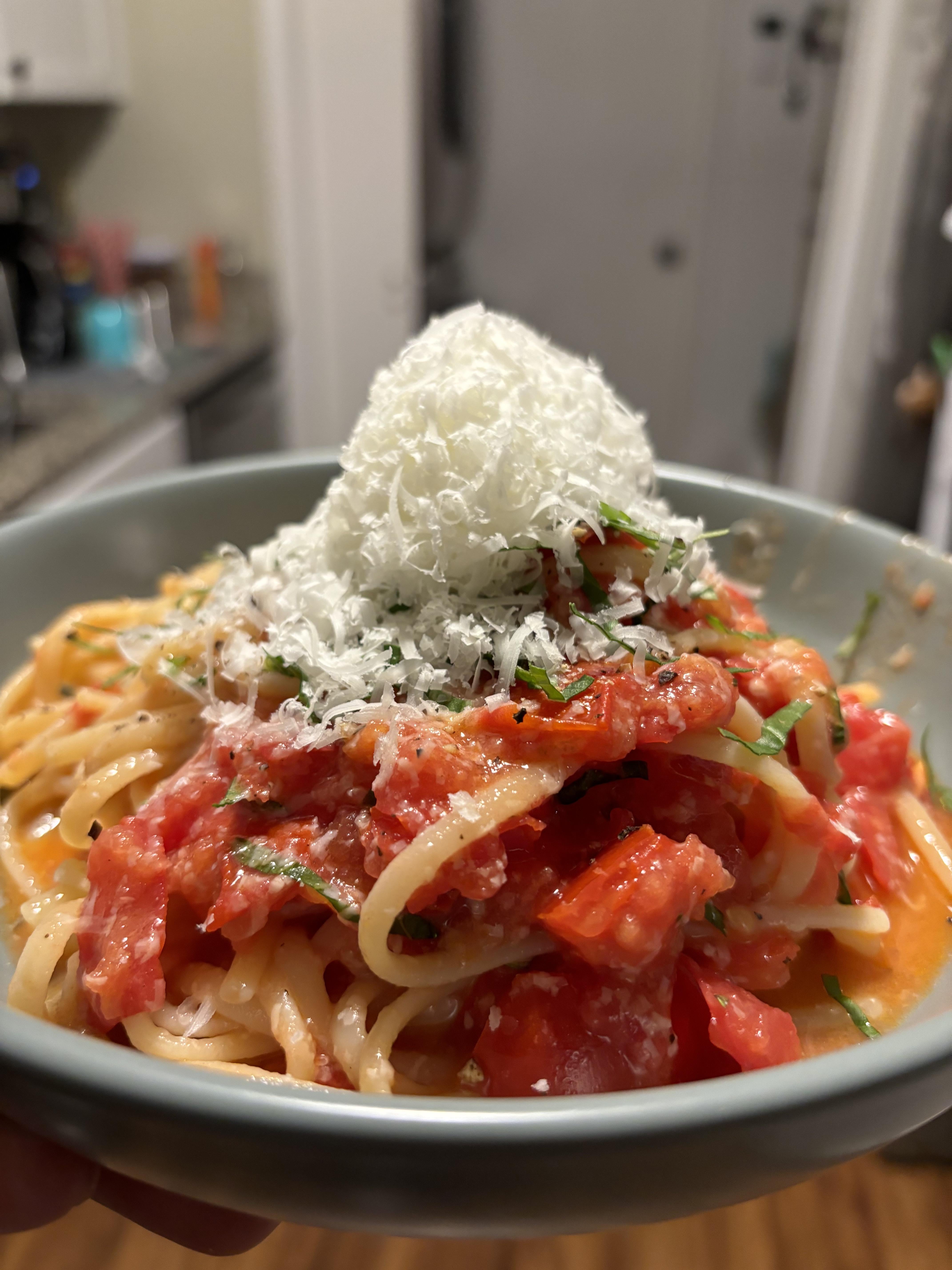 Transfer from water to your tomato mixture, mix mix mix, add pasta water as needed.