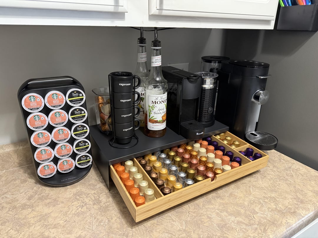The Elloven monitor stand was delivered today from IKEA (thanks u/ffanniiee) and all my pods are organized. I love it!