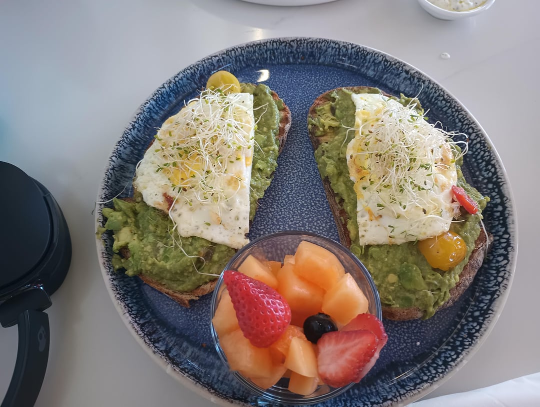 Odd-Principle5424 1 year ago The lunch was two avocado toast with egg, tomato, and bean sprout. The fruits are cantaloupe, straberry, and blueberry. And the desert was a banana cream gelato (kid size). Any help appreciates!