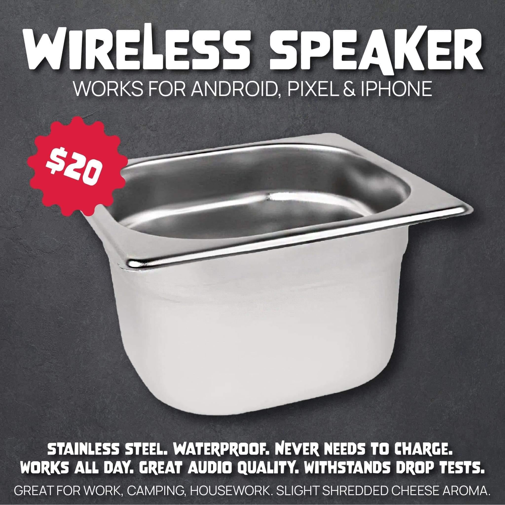Speaker wasn’t charged when we went camping but had a sauce pot. Pot radio saved camping!