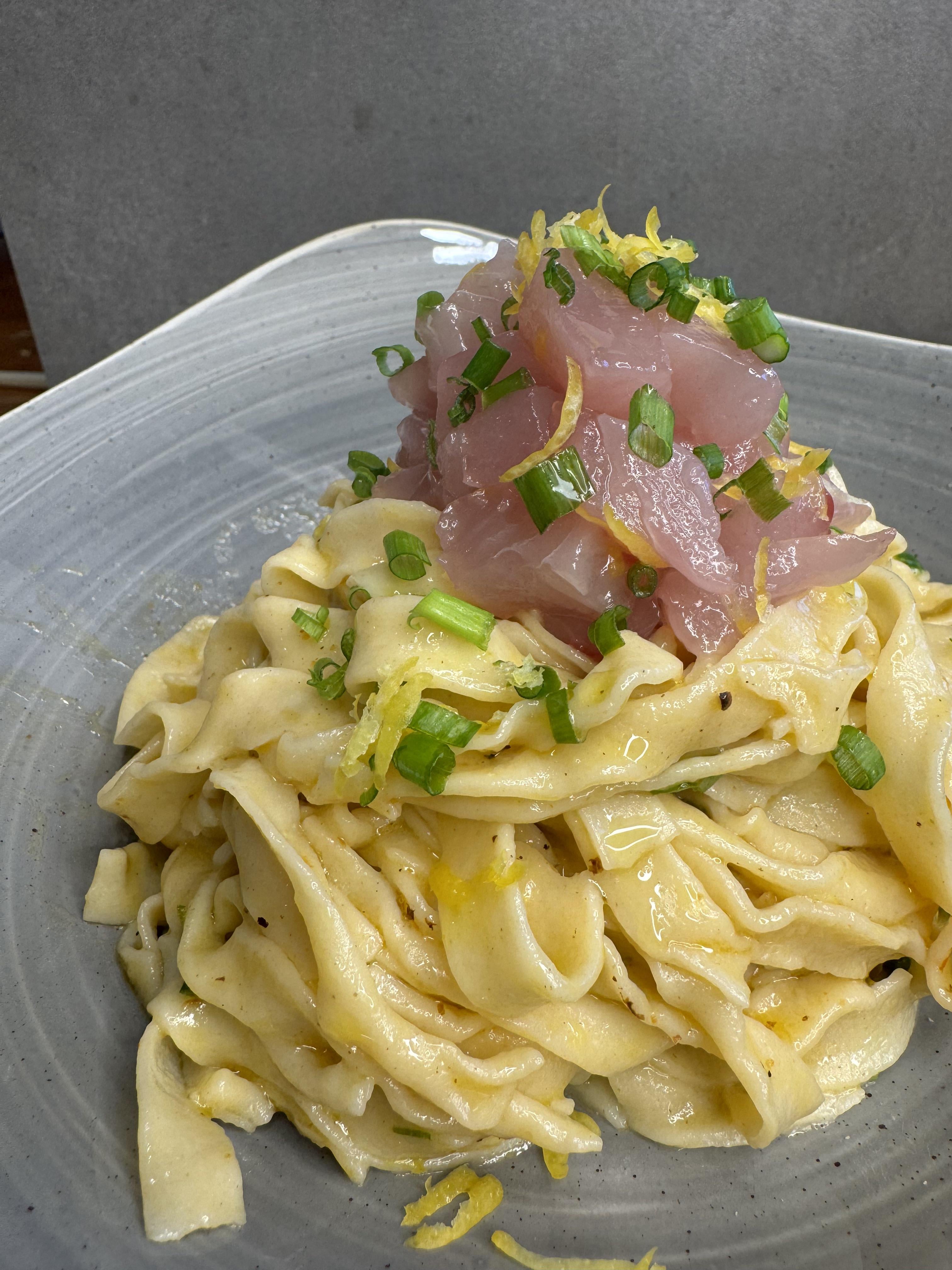 The people saying crudo on pasta is wrong, don’t know what they are talking about.