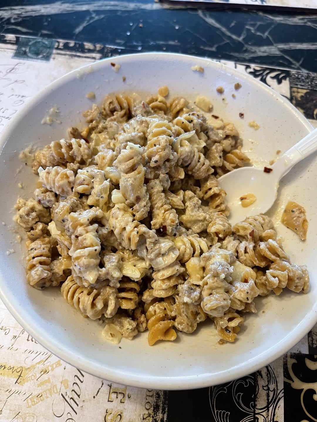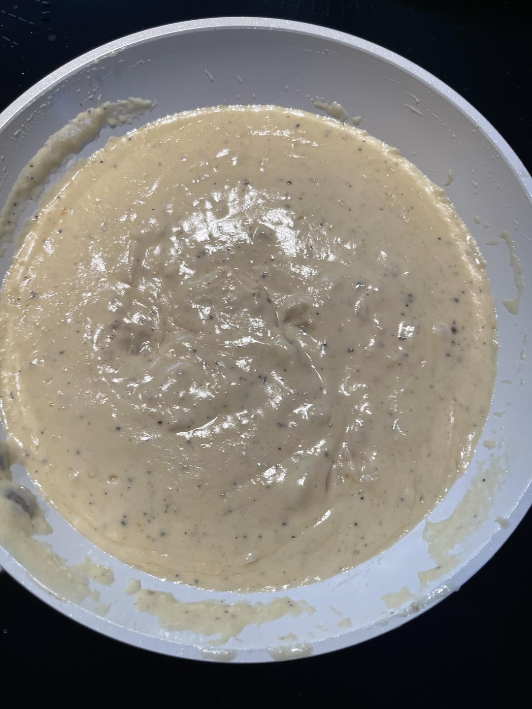 First time making alfredo sauce with onions garlic raleys parmesan cheese shredded cheddar cheese and salt n black pepper. Can’t eat butter bad for my gout.