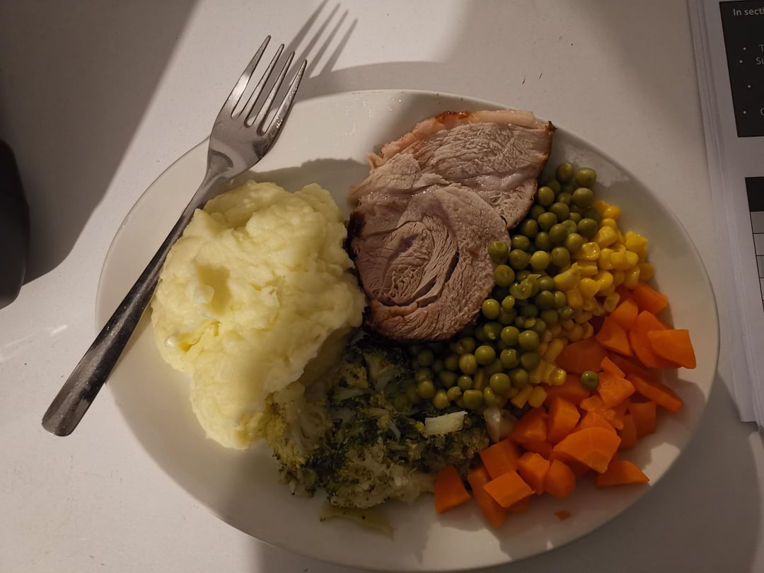 Calories in this roast pork dinner? by fluttershy357 2 Comments eatingaburger2000 1 year ago im thinking 550 just based off of vibes alone abhaytalreja 1 year ago [AI food tracker says about 650 cals](https://nutrifytracker.com/ai-food-analyzer-macro-and-calorie-counter?analysisId=oHVWdwgUNb4OWOnh06hq)Write A CommentYou must be logged in to post a comment.