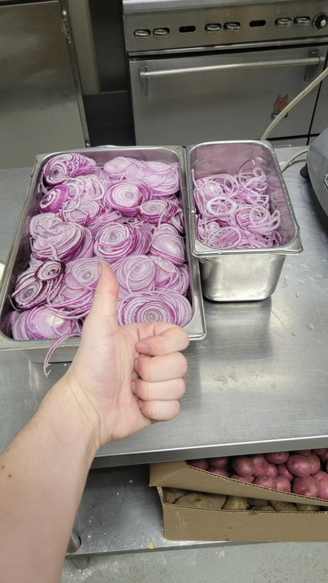 Almost perfect, there seems to be a large box of potato where you could put more onion.