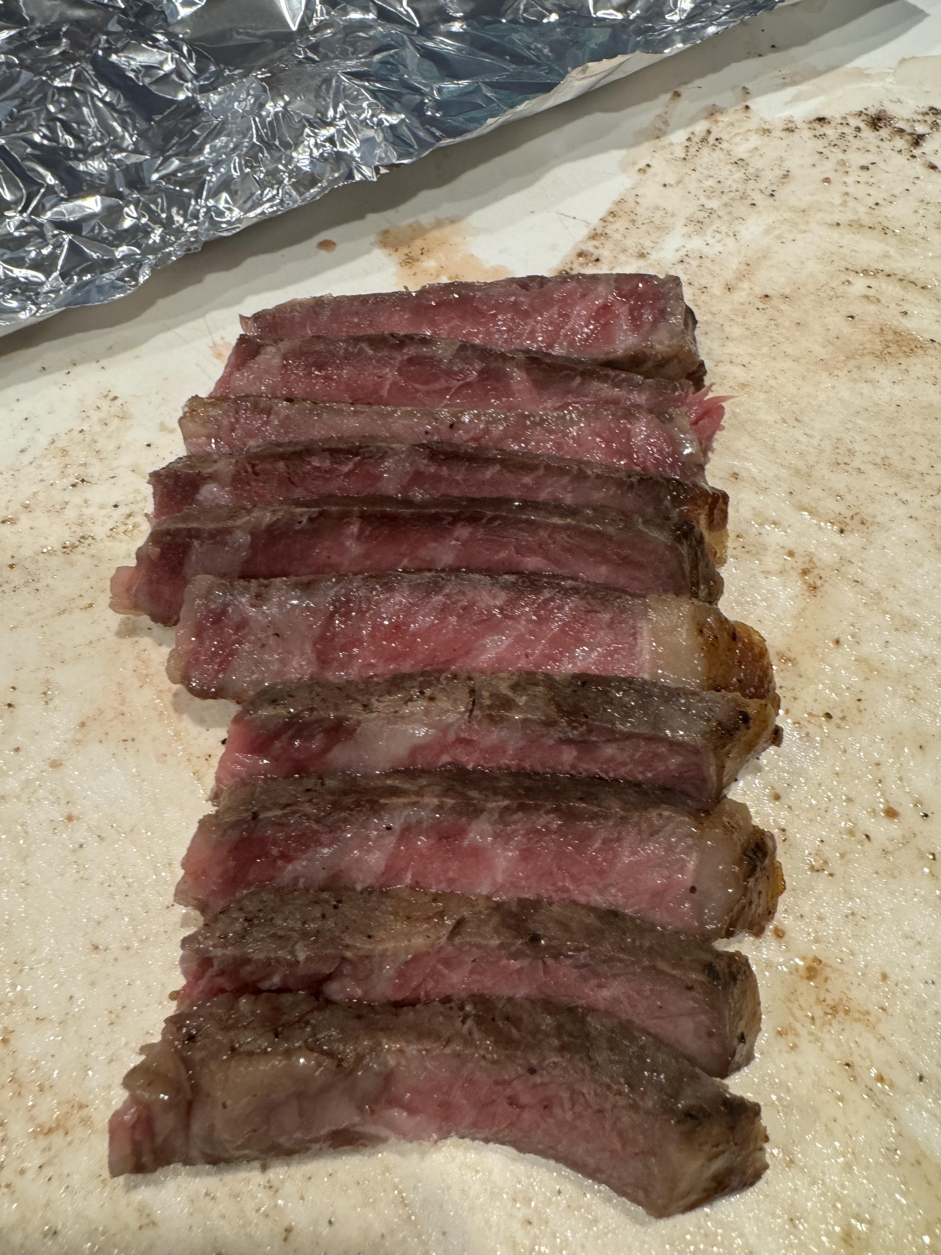 I don’t mean to be a disenting opinion here, but the fat doesn’t look rendered to me. I love a rare steak though.