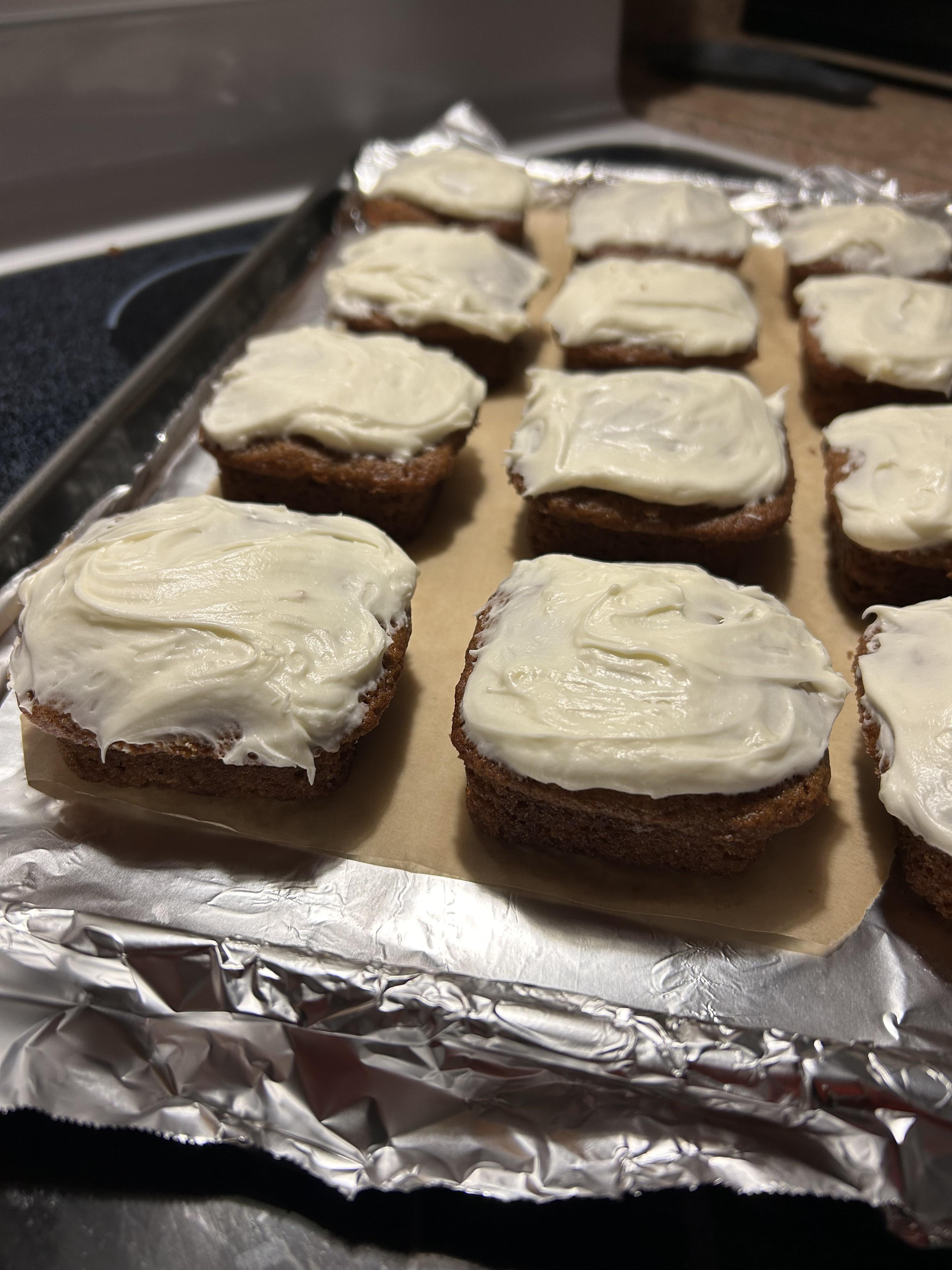 Mini pumpkin bread squares with cream cheese icing by FlakeyMuskrat Write A CommentYou must be logged in to post a comment.