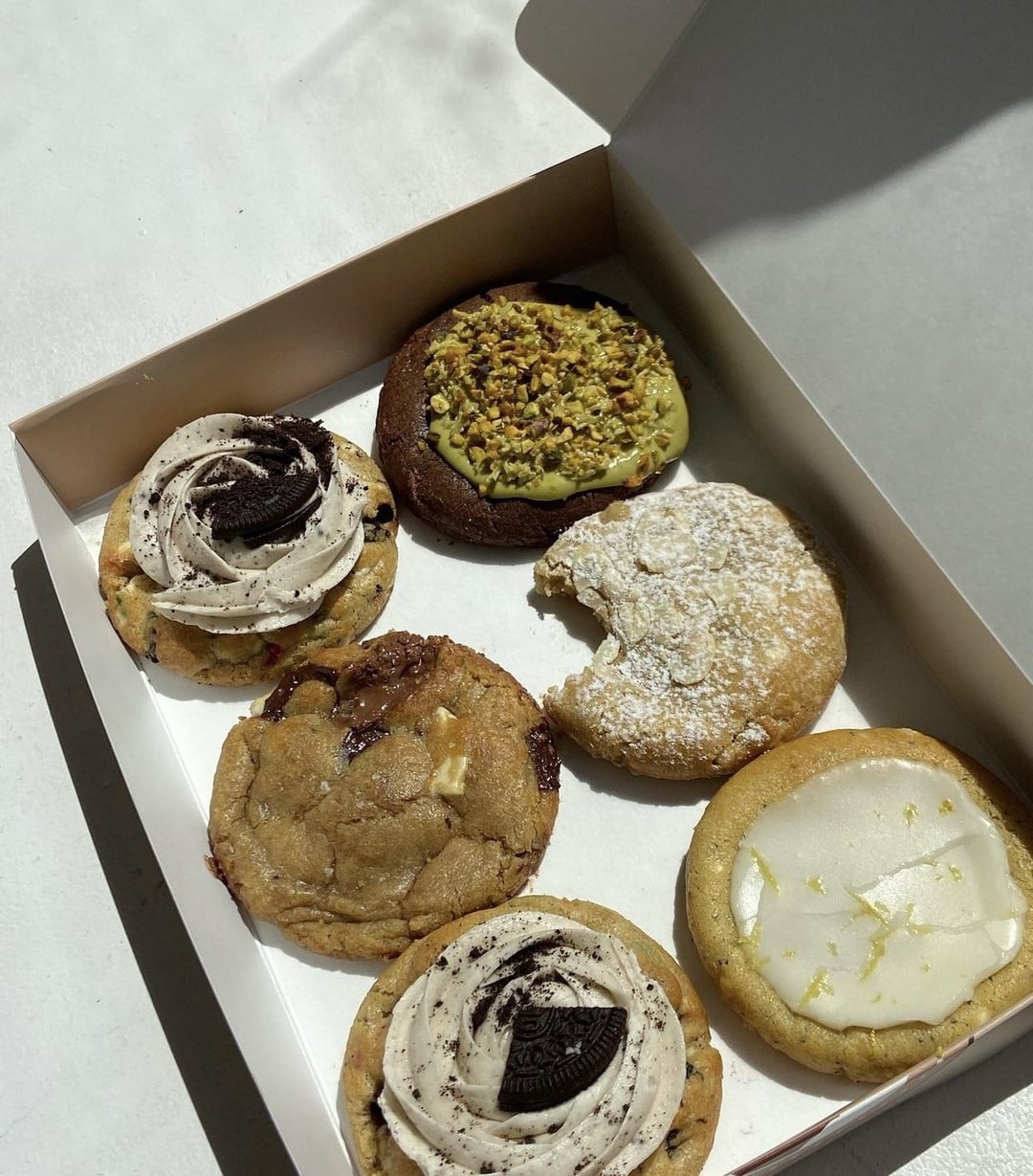 These cookies specifically the chocolate chunk and tiramisu. I pulled a photo off their instagram to show a size reference and there also not very thin.