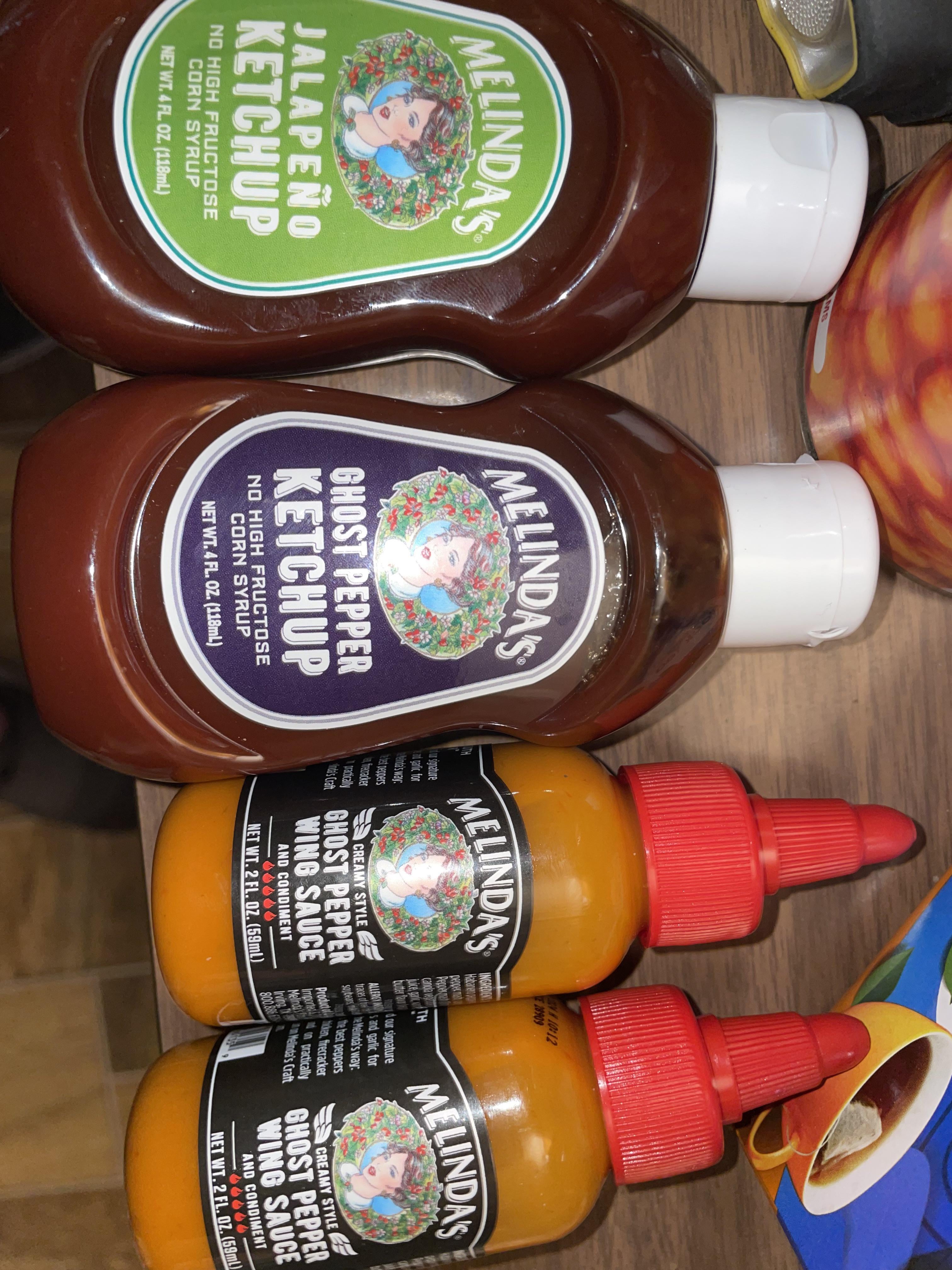 I usually get big bottles of the wing sauce but cmon they were 50¢ and they’re so tiny, I had to…I’ve also never been able to find the Melinda’s ketchups anywhere so finally finding them was pretty fkn cool.