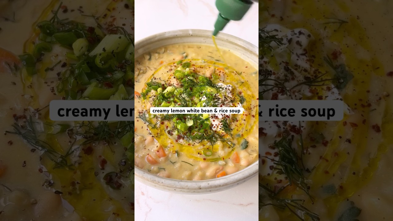 2 tbsp olive oil ½ large (or 1 small) yellow onion, chopped 1 celery stalk, chopped 1 medium carrot, chopped 6 cloves garlic, finely chopped 8 cups vegetable broth 1 cup rice Juice of 3 lemons 2 eggs 2 (15.5 oz) cans white beans, rinsed and drained ⅓ cup roughly chopped parsley 2 tbsp chopped dill To top: sour cream & green onions