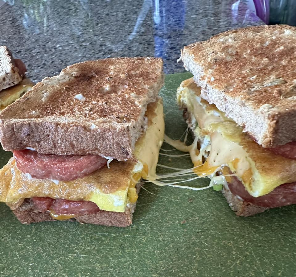 spam, scrambled eggs with green onions, cheese sandwichby ravishing_roxy Write A CommentYou must be logged in to post a comment.