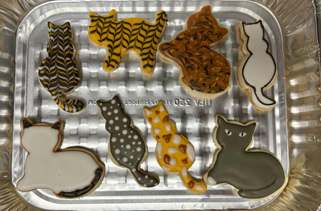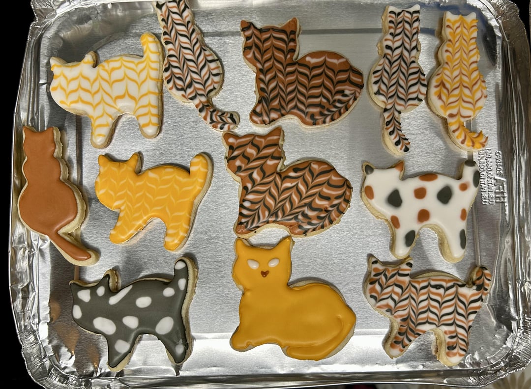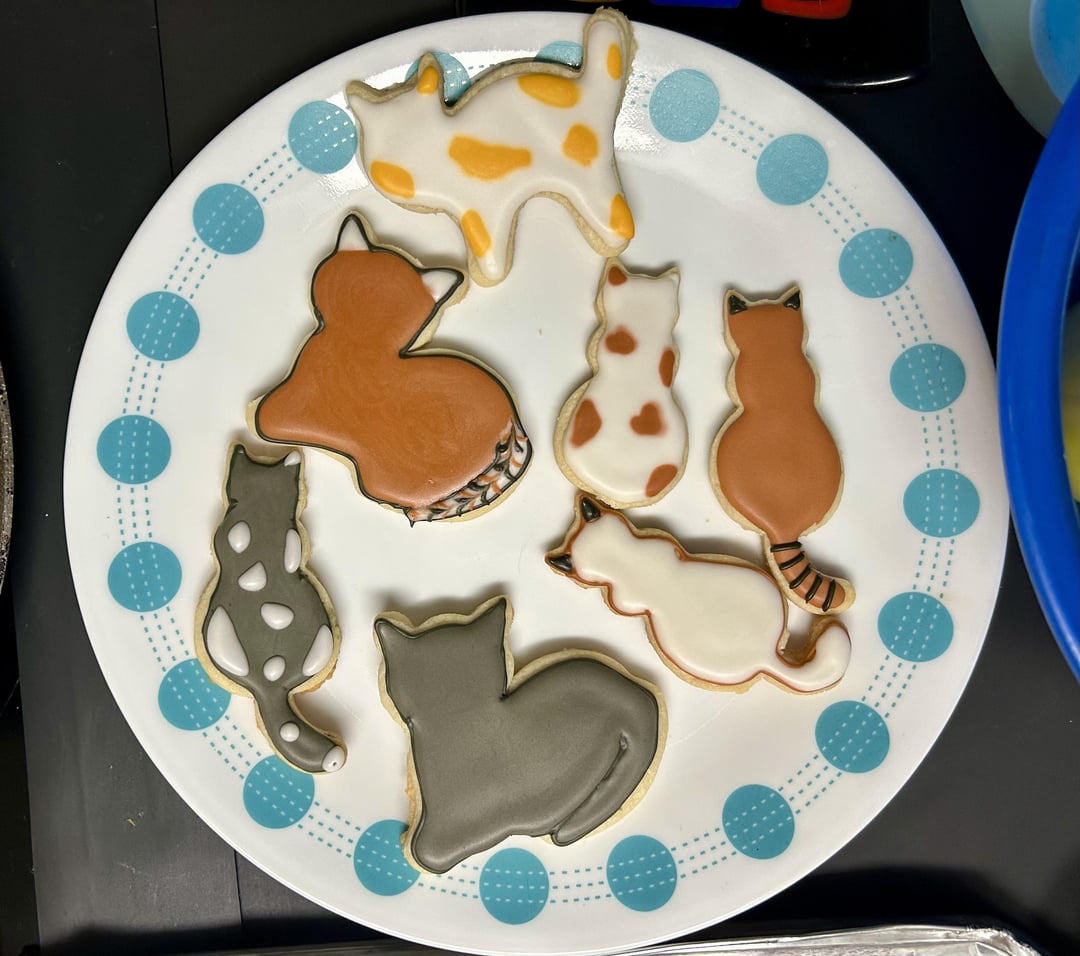 I have gone to two in person classes where they make the cookies and royal icing for you. This was my second time trying at home. The first time (a couple weeks ago), I definitely didn’t get the royal icing texture correct at all. This time, I think I did much better with it. Added a bit too much water to the black (so it was more gray and too runny). But everything else went pretty well! Hoping to try some more designs soon. Any online courses you’d recommend?