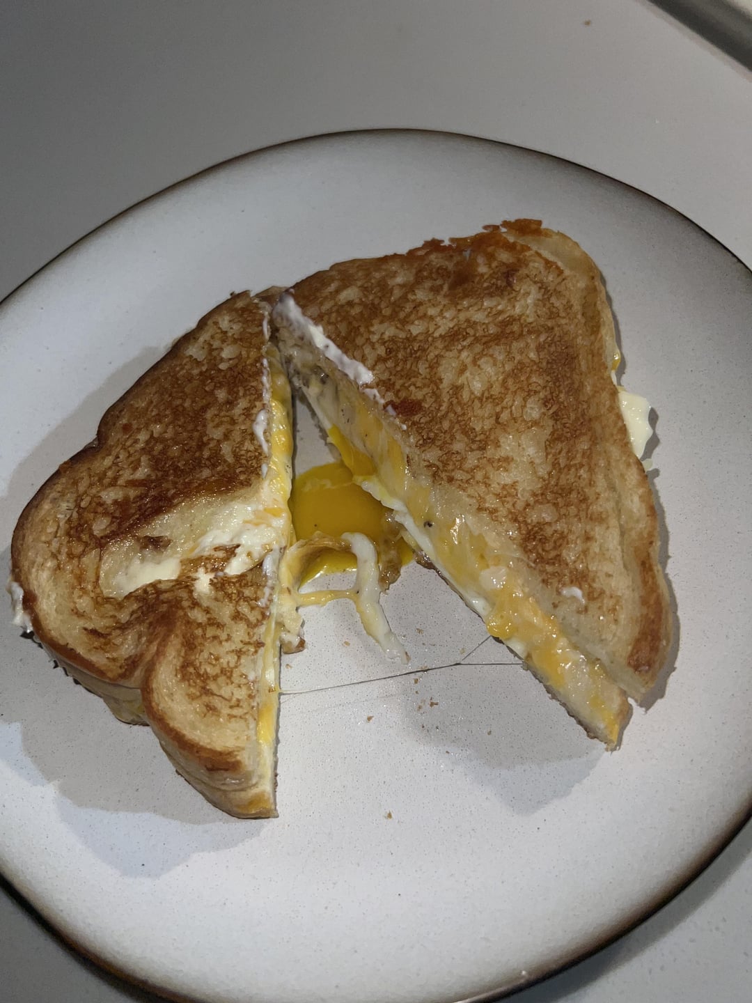 Fried egg, Colby jack cheese, mayoby Jealous-Arugula4428 3 Comments Felicity110 1 year ago Egg cooked inside of sandwich? Crack in plate in between slices ? RedRider1138 1 year ago Looks fantastic! Bubbly57 1 year ago Looks delicious 😋Write A CommentYou must be logged in to post a comment.