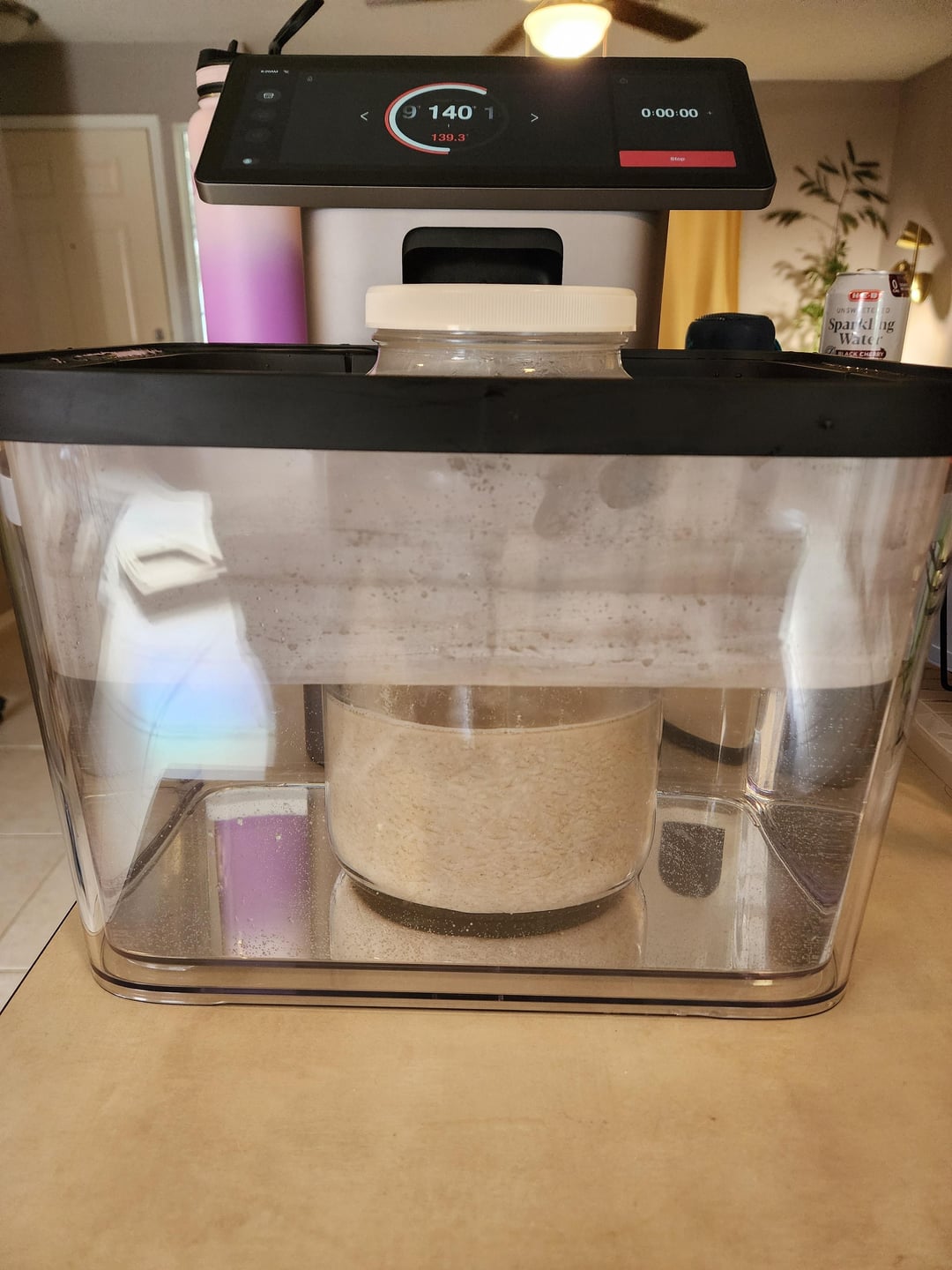 Not my recipe except for the sousvide part. I was following Maangchi’s recipe which requires you to maintain the rice between 120° – 140° for 6 hours on the stove. I made my life easier by sousvide instead, and it worked out.
