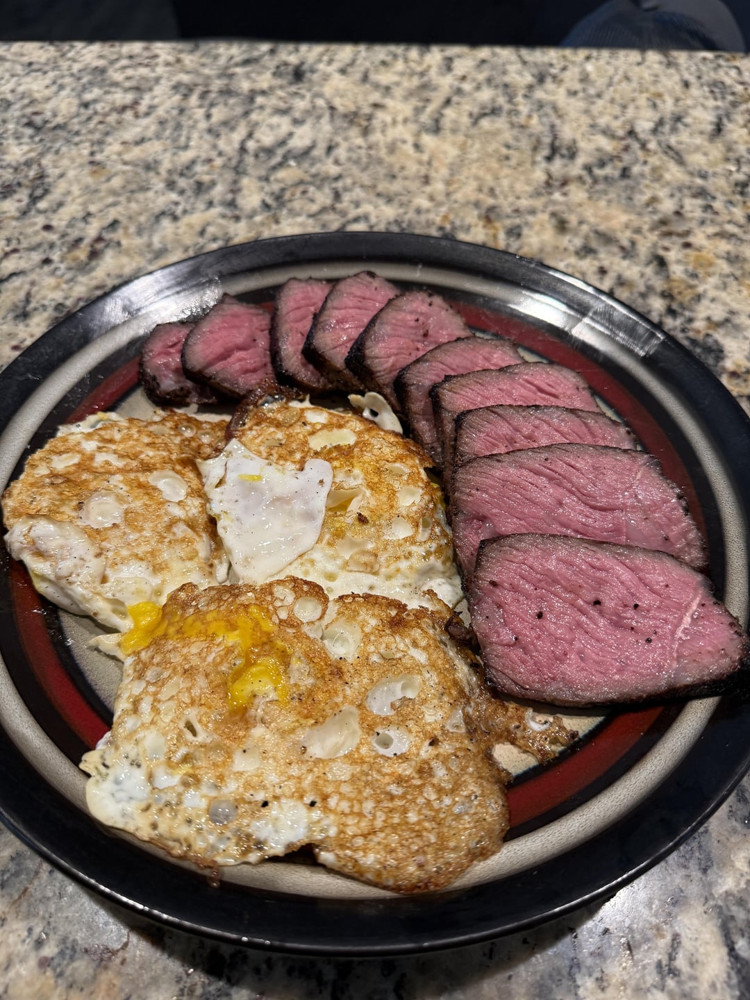 Beautiful crust and a nice medium rare wall to wall interior. Bravo, well done.