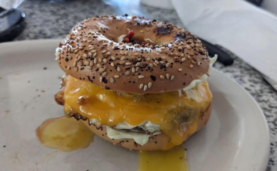 joelfarris 1 year ago Everything bagel! This is one of my favorite things to make for breakfast. So good!Every few months or so, try a layer of cream cheese on the lower half, along with the melted cheddar, so your arteries still love you.