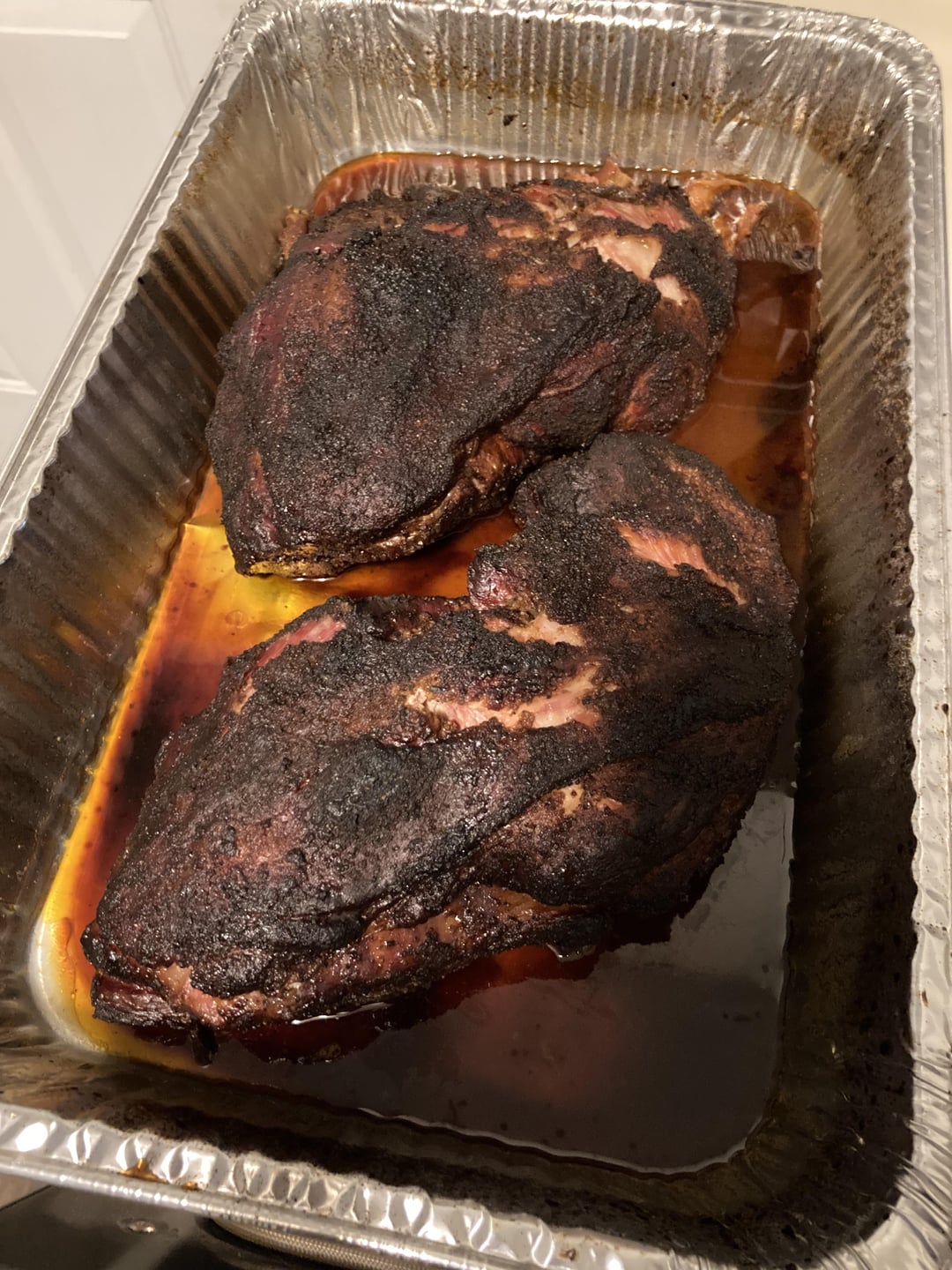 Got started earlier than normal so I just let it go. 8 hours smoking. Finished in the oven for two more hours.