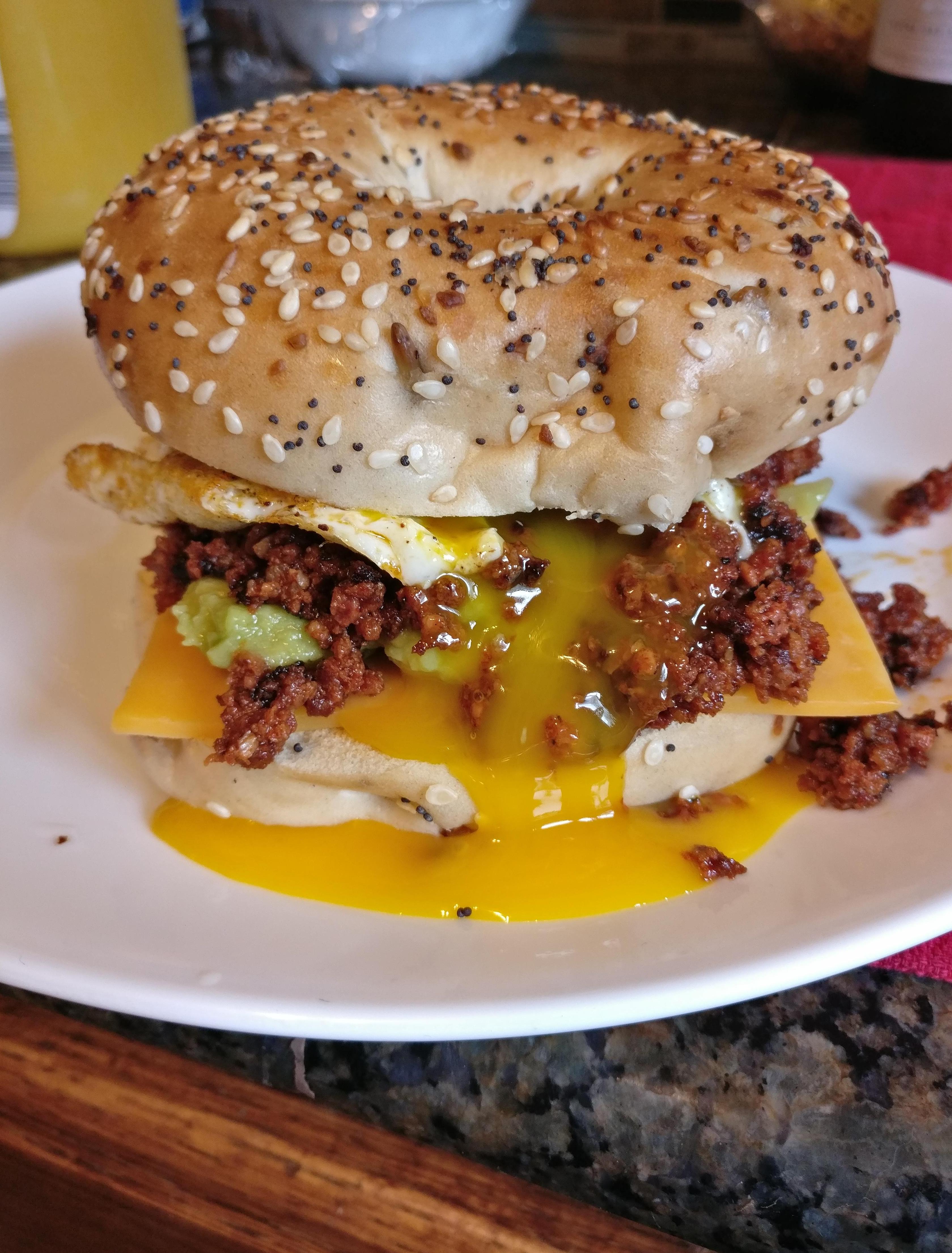 Cheddar, guacamole, chorizo, and an egg on an everything bagel by sexyfoxxoxo 1 Comment Campbell__Hayden 1 year ago *Whoooa, my* … this what life is all about!Write A CommentYou must be logged in to post a comment.