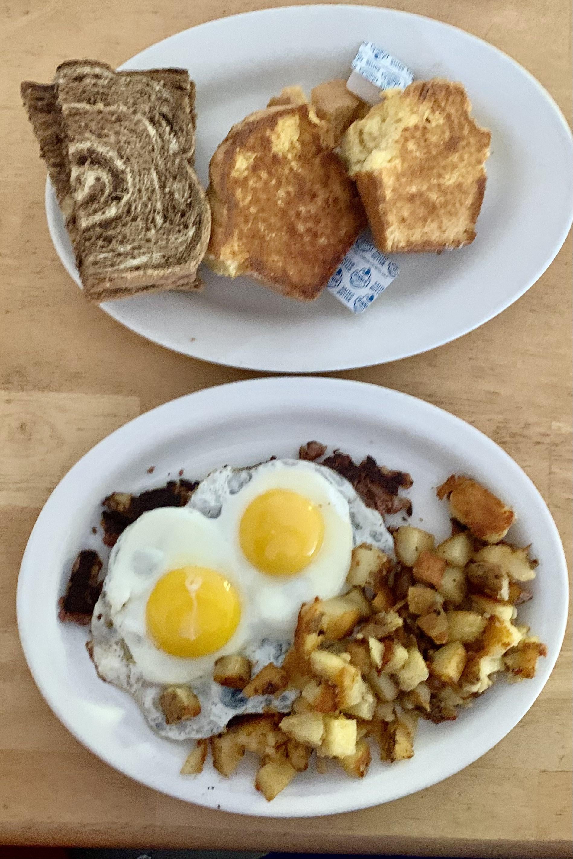 A great meal at a local diner. Two sunny side up eggs topping a pile of hash, served with home fries, toast, and a corn muffin. by PetroniusKing 1 Comment Hornswagglers_Lament 1 year ago This is the way.Write A CommentYou must be logged in to post a comment.