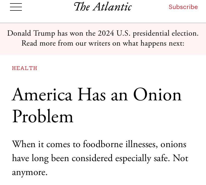 And onions are only going to get unsafer as time progresses with incoming major changes at the FDA. I mean all vegetables. Oh maybe I mean all products.