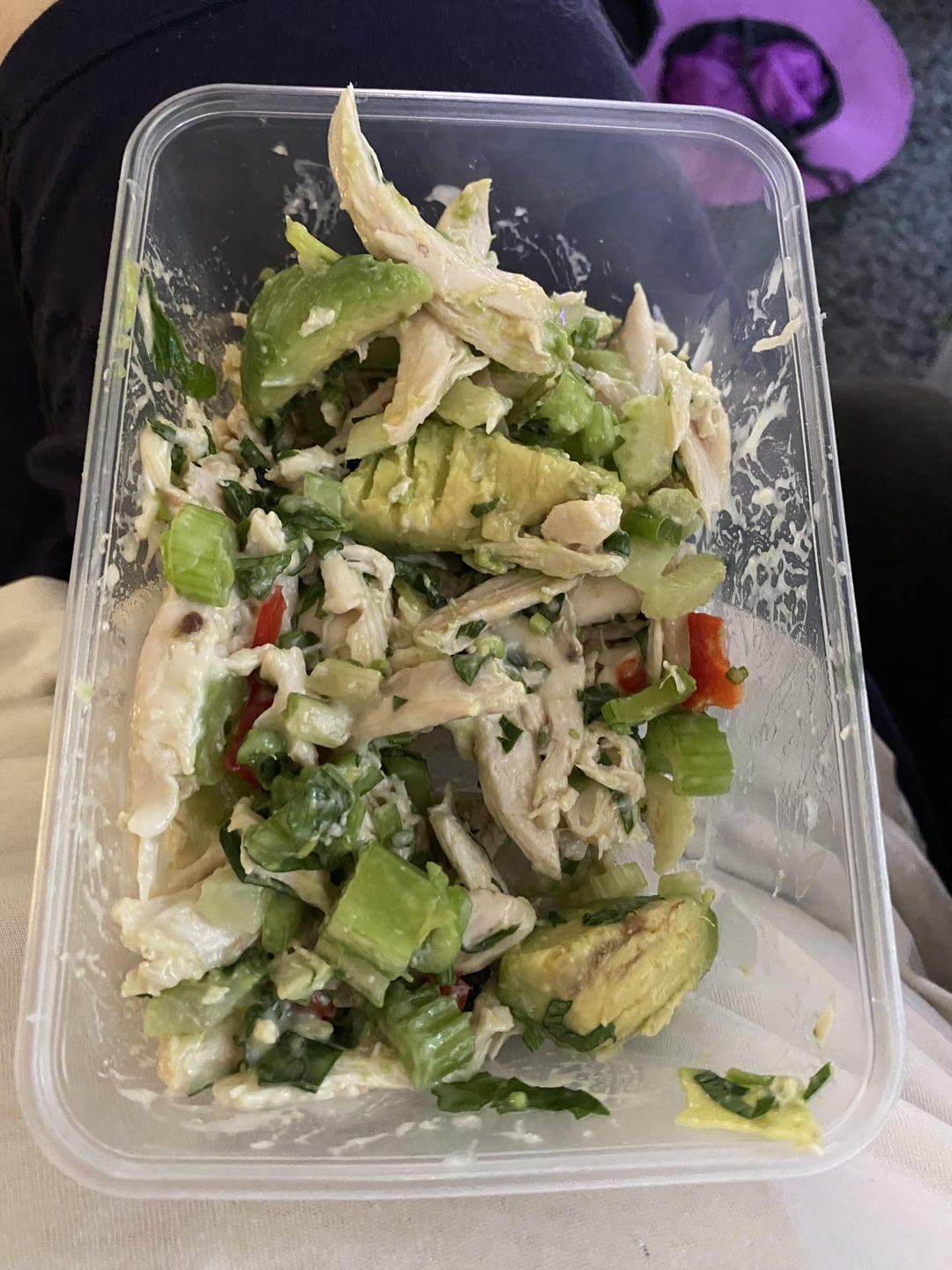 Chicken avocado saladby Private62645949 1 Comment Hot_Web5039 1 year ago I’m guessing around 400 cals and 30 grams of proteinWrite A CommentYou must be logged in to post a comment.