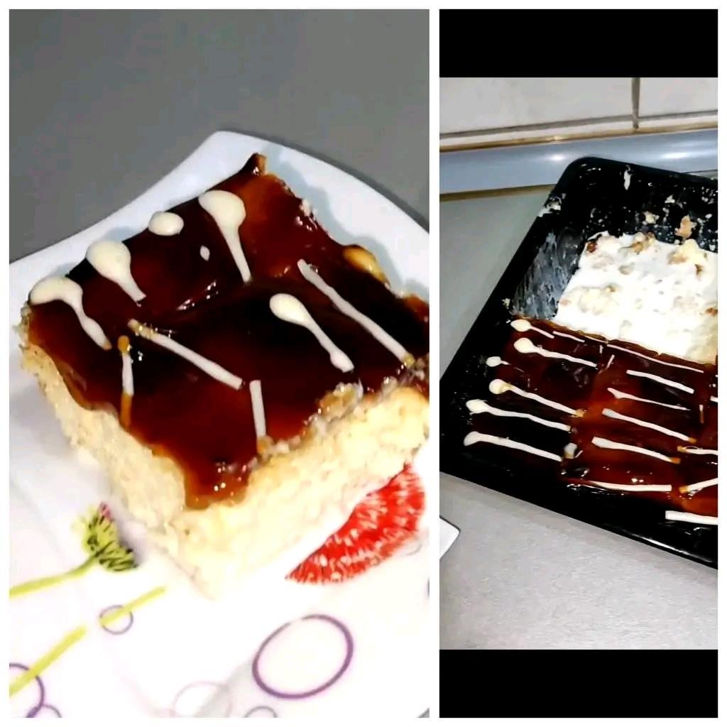 Put milk, condensed milk and hopla in a bowl and mix it well. Take the well-chilled sponge cake out of the pan and put some of the topping in the pan, return the sponge cake to the pan and pour spoonfuls of it until you use up the topping. Let the liquid absorb well. Then cover it with trileche caramel and leave it in the fridge for 2-3 hours and the cake is ready to eat