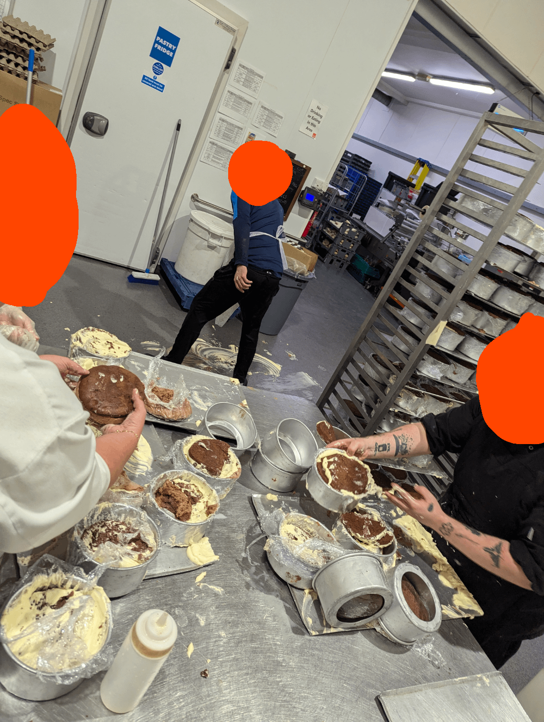 Thanks to the trays and my colleagues, though, we were able to salvage most of the cakes! (The ones touching the ground were binned, the ones sandwiched between trays were saved).