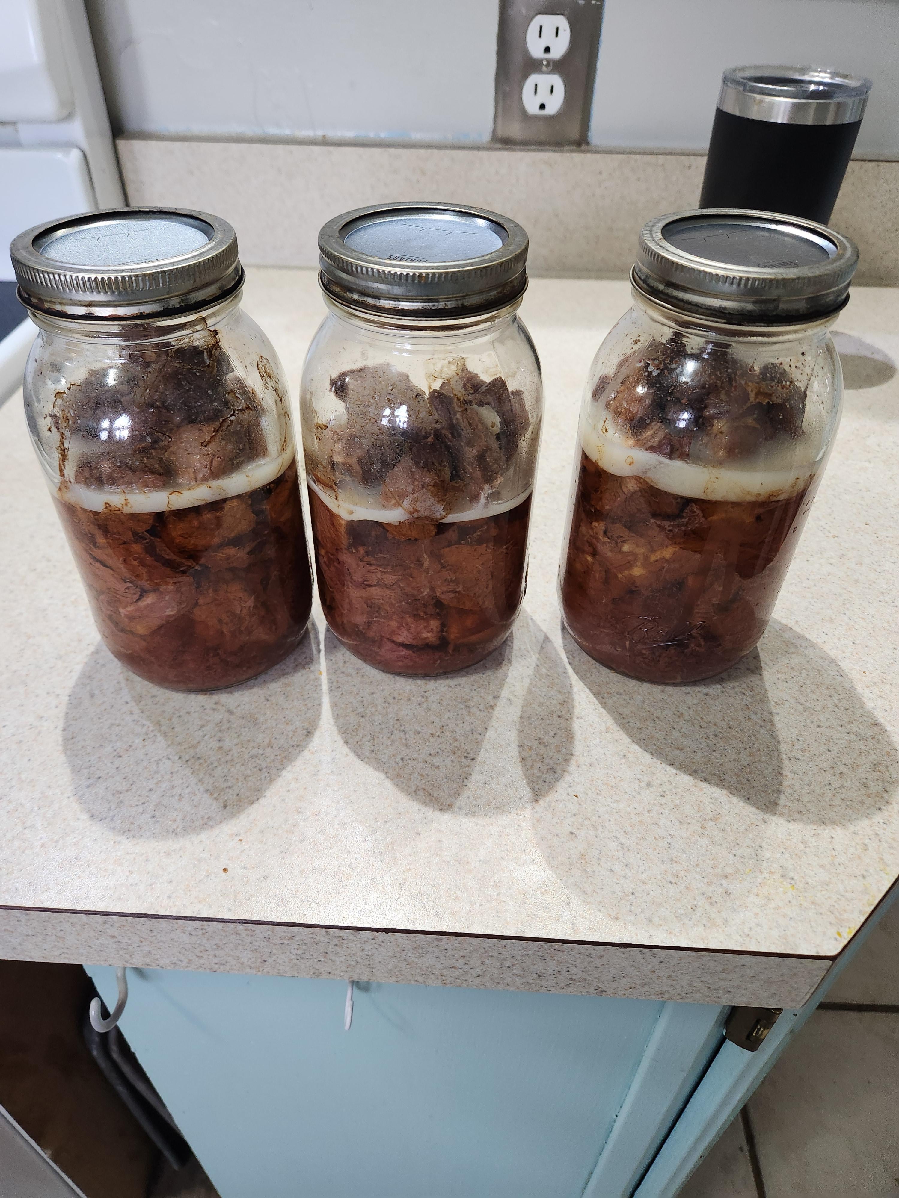 I packed this beef roast to 1 inch heads headspace and added 1 teaspoon salt. Pressure canned for 90 minutes at 15psi for my altitude. The canner water was clean so don't think it siphoned.