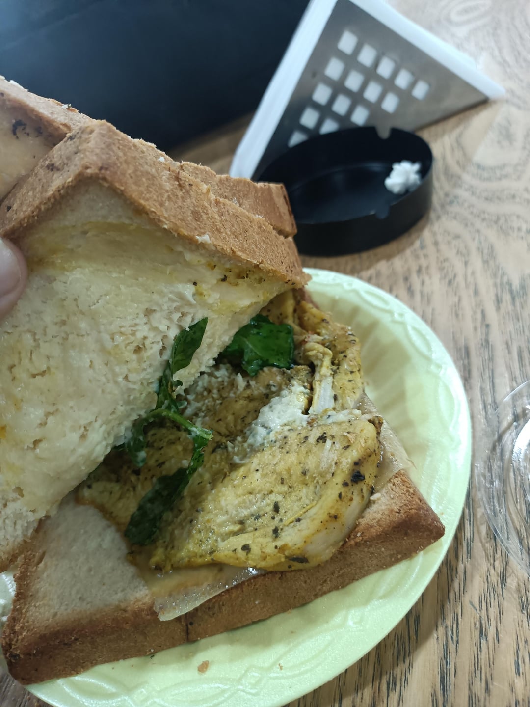 Bread 100 per slice so 300, egg 70-80, chicken 100, dressing etc 30-50,