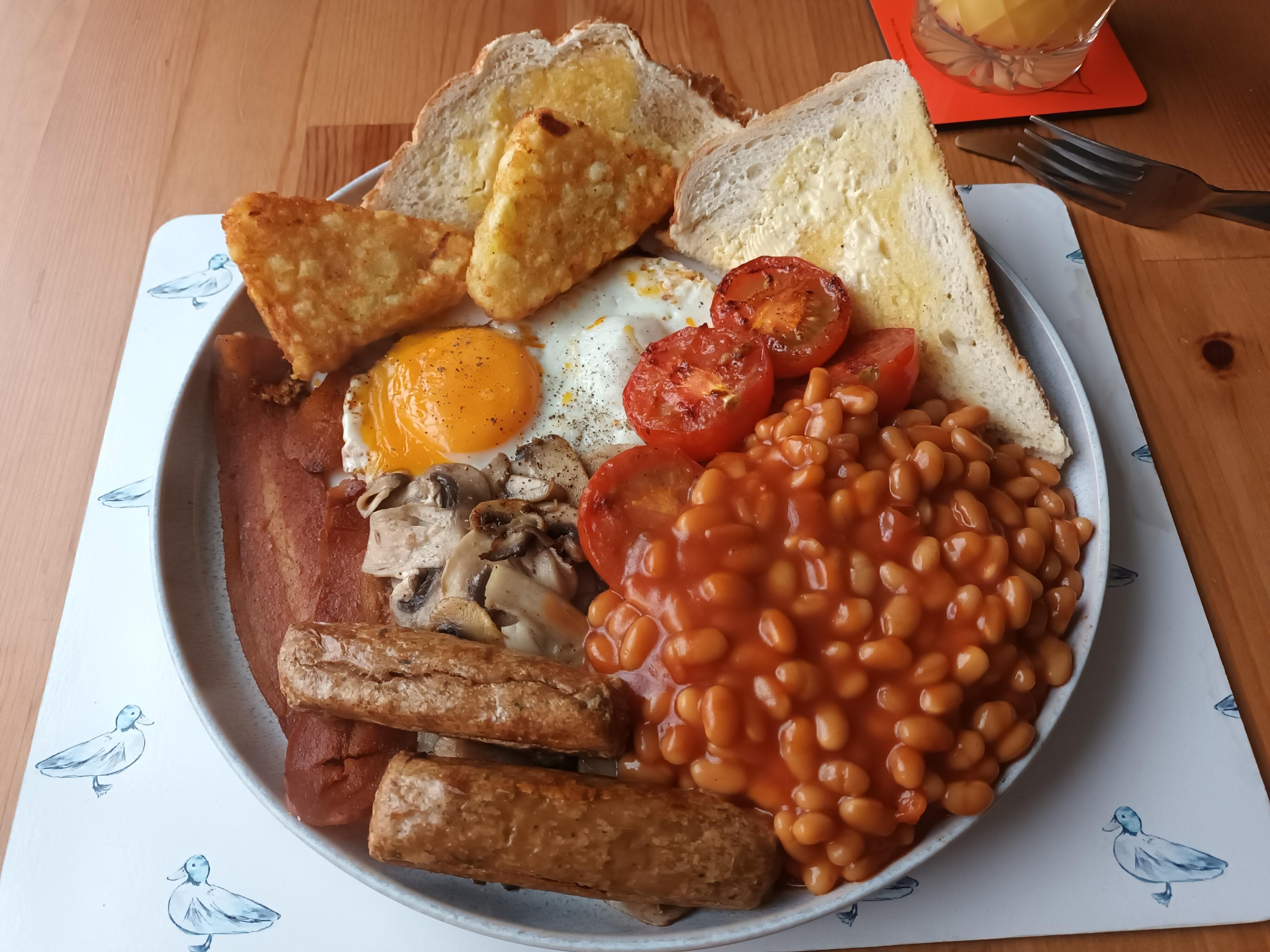 It was birthday yesterday, my other half made this up for me. My stomach is still groaning but it was worth it. Also, first full fry up since turning veggie at the start of the year. I miss regular bacon and sausage, but as a whole plate, this was far from bad.