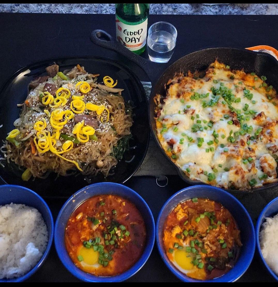 This was my first time making japchae and buldak. Also made some sundubu-jjigae. Korean food really is my favorite 😍by sneakyxxxsneaky 1 Comment Asleep_Gap9069 1 year ago Man I would down at least 4 bottles with that.. looks goodWrite A CommentYou must be logged in to post a comment.