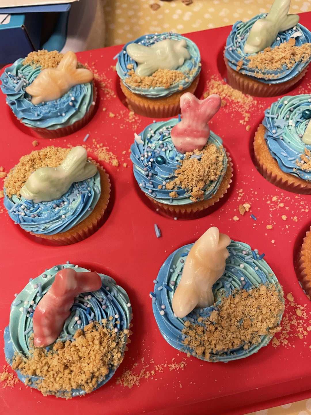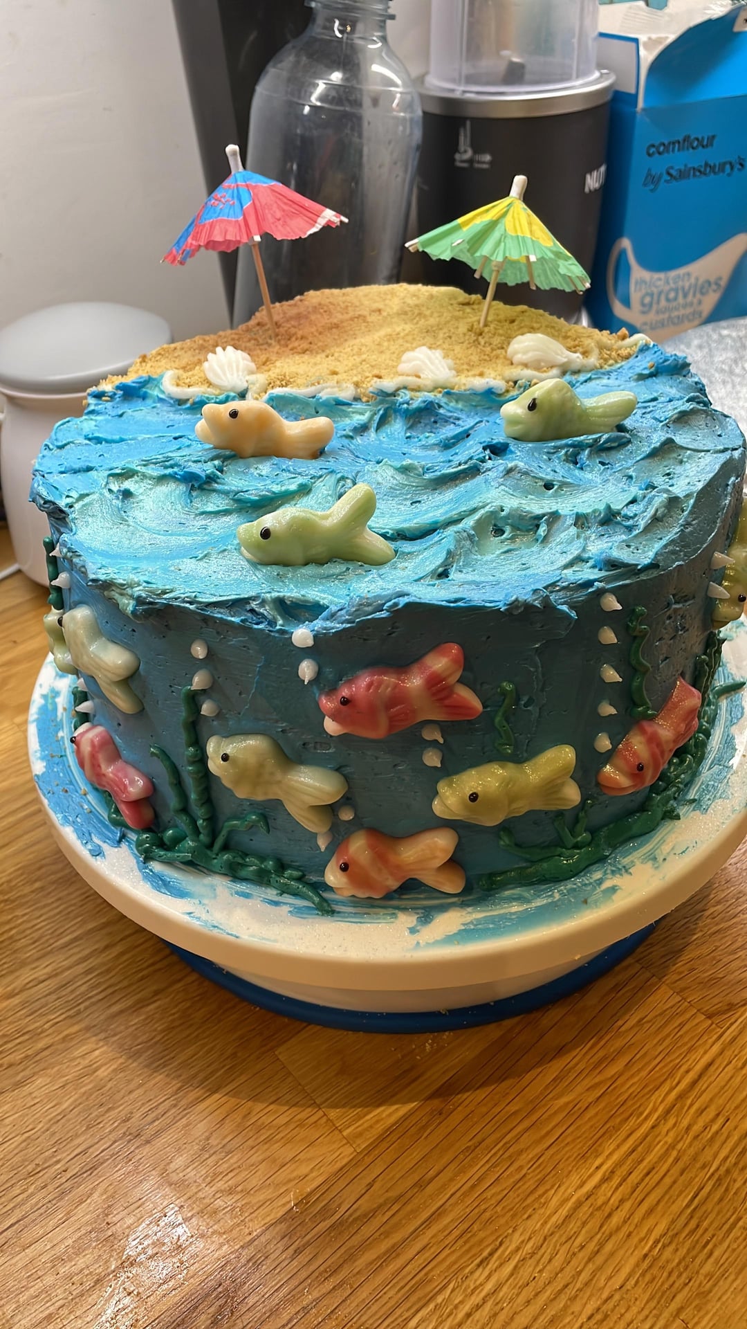 So cute! 🥰 Love what you did with the waves are the fish gummy’s by any chance?