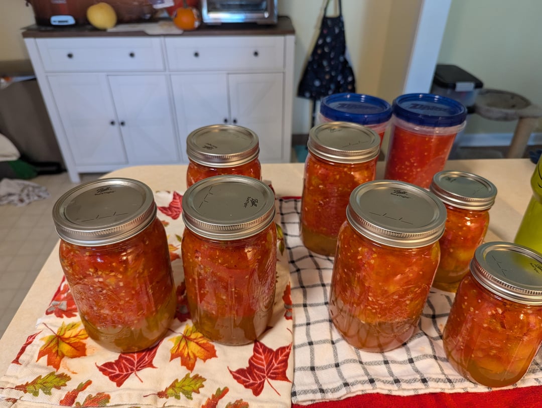 Oh, the two containers that are not glass went into the freezer with extra tomatoes, will use those first for soup.