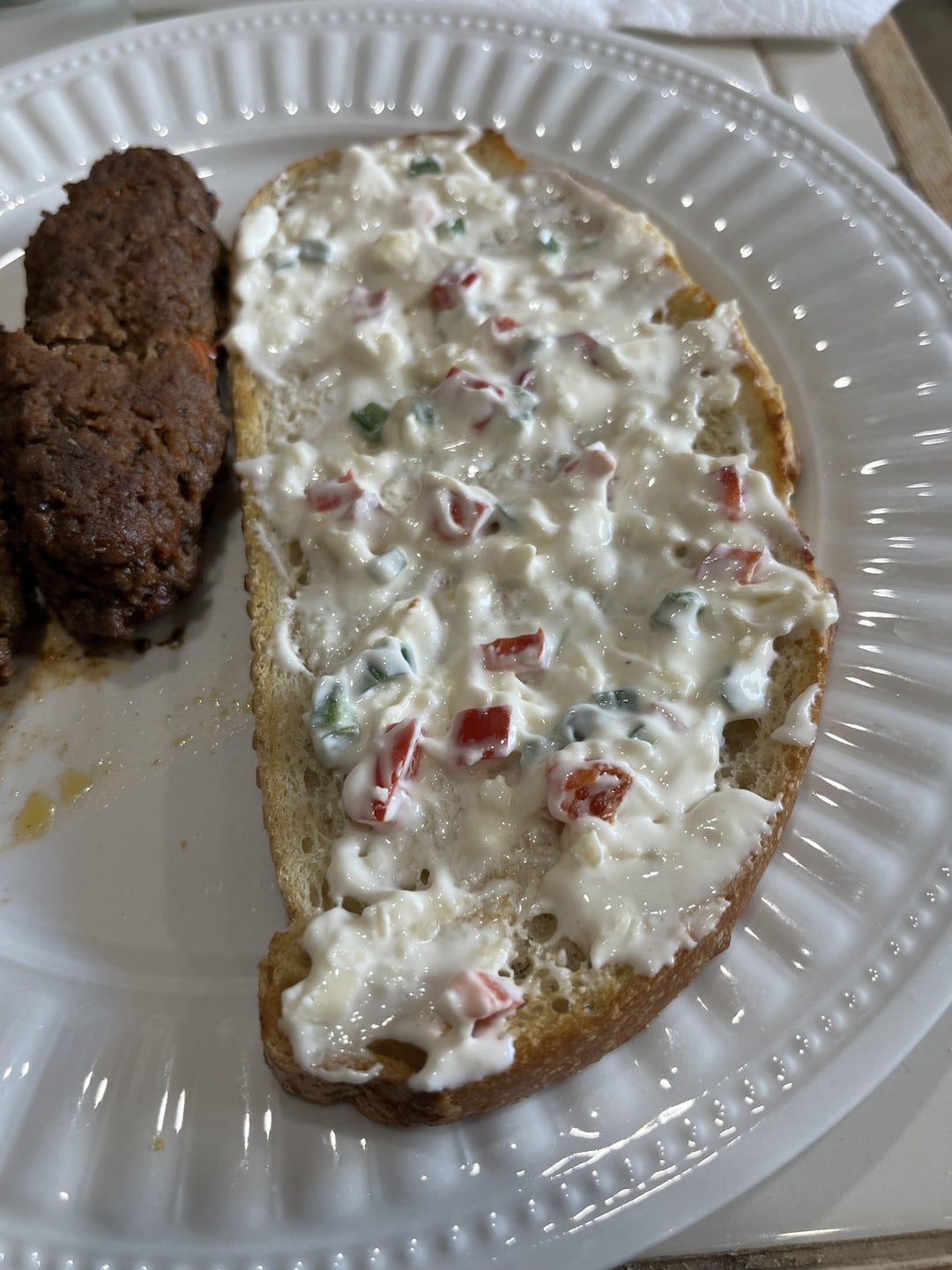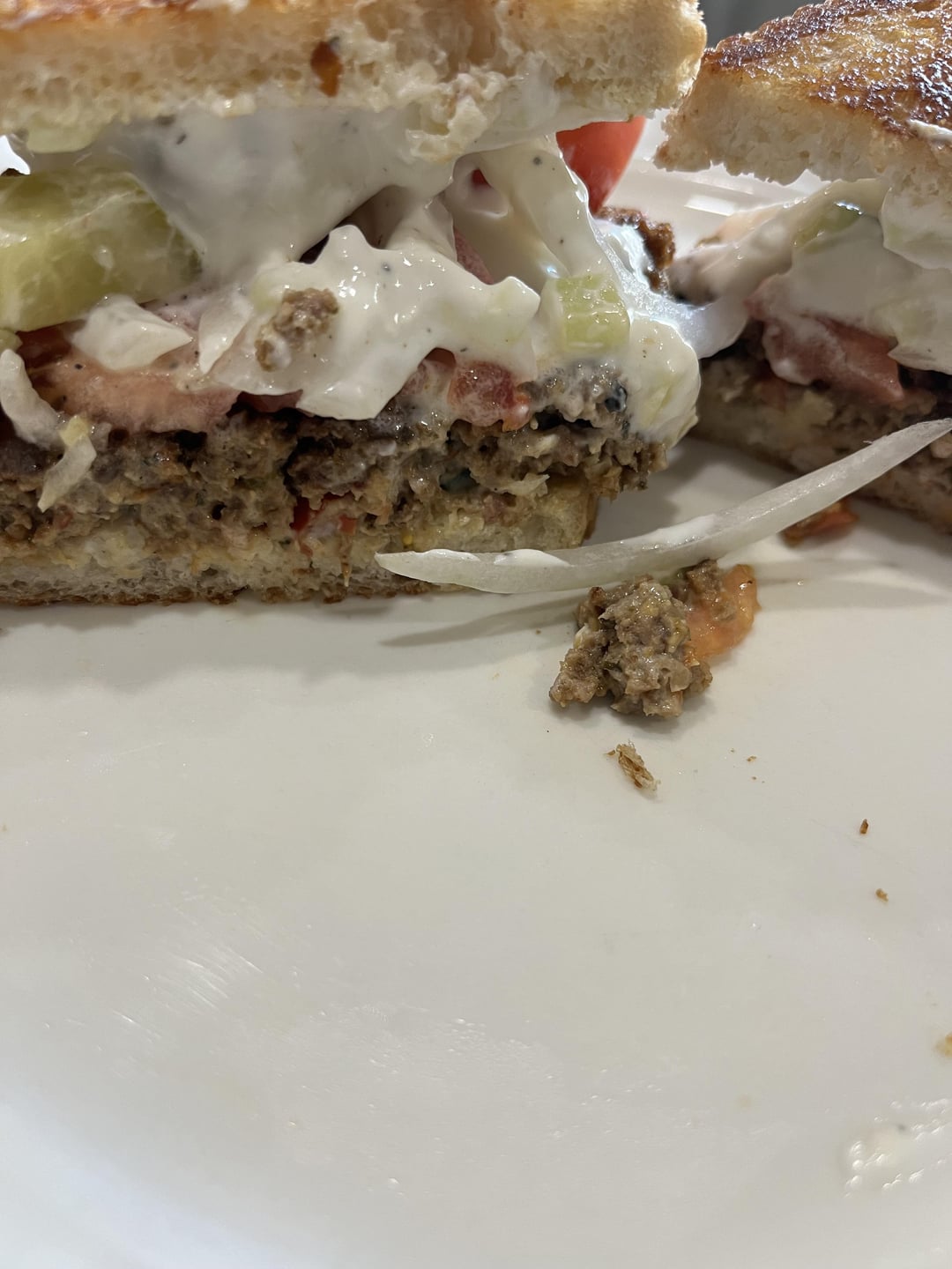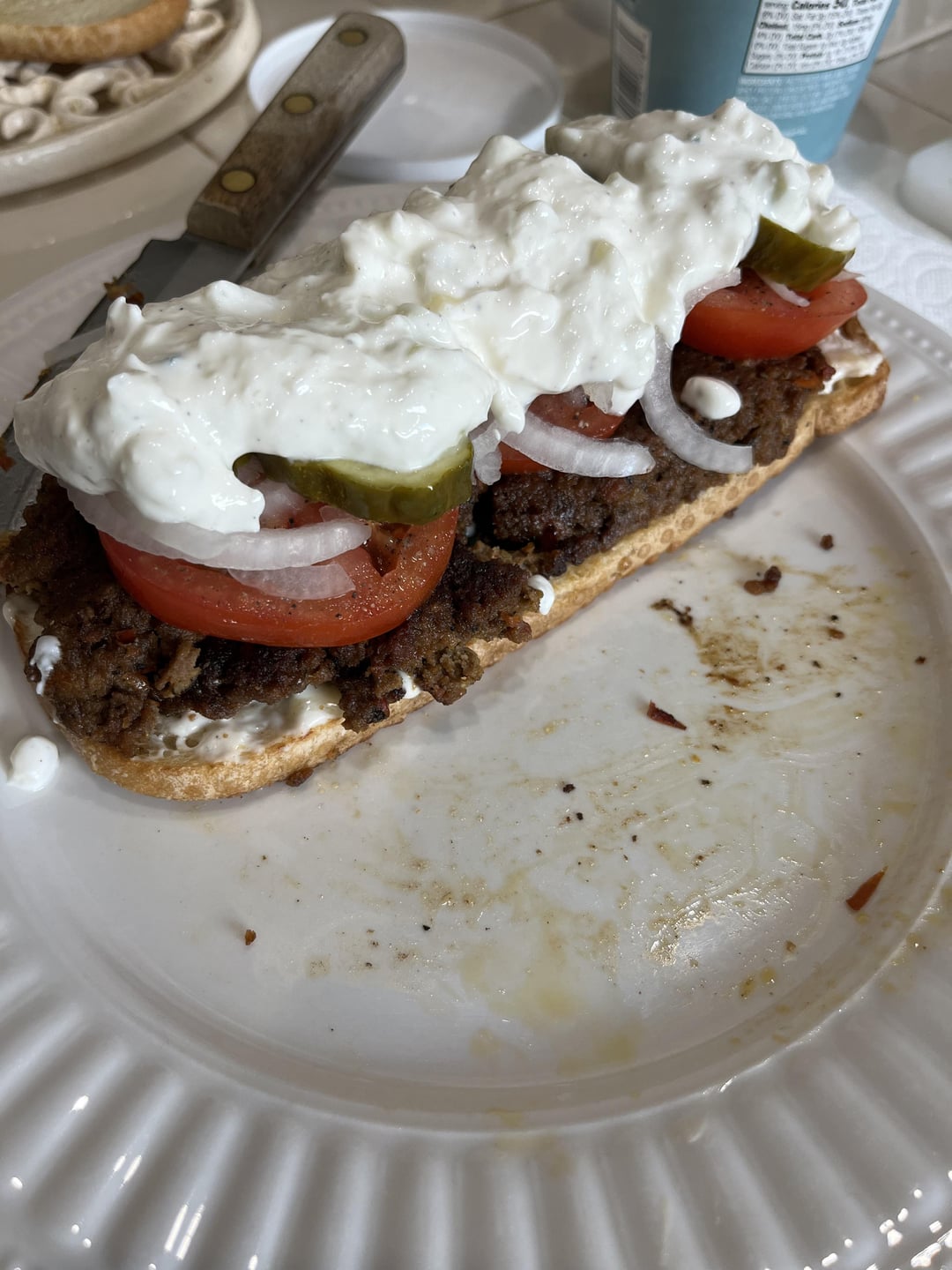 Garlic-rubbed sourdough, kofta kebab, bell pepper cream cheese spread, tomato, onion, pickle, tzatziki.It was supposed to be a wrap/gyro style, but I didn’t feel like going to another store to find pita or lavash. by MantisTobogganMD-Phd 4 Comments JizossJ 1 year ago Pretty genius idea, eating it on grilled bread tugboat_karatedog 1 year ago My sister/brother in food, that looks absolutely incredible. Bubbly57 1 year ago Looks fabulous 👌 LightWolfCavalry 1 year ago Kofta is so supremely underrated. Love what you did with the yogurt / cream cheese spread, too. Write A CommentYou must be logged in to post a comment.