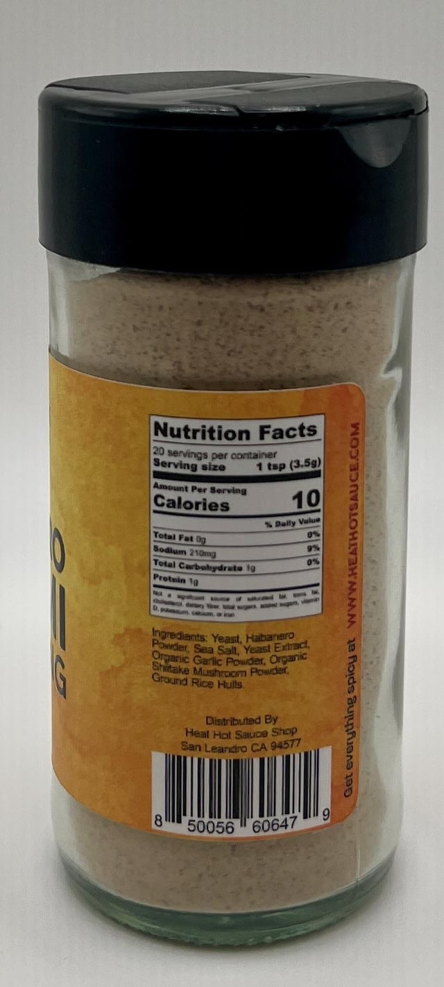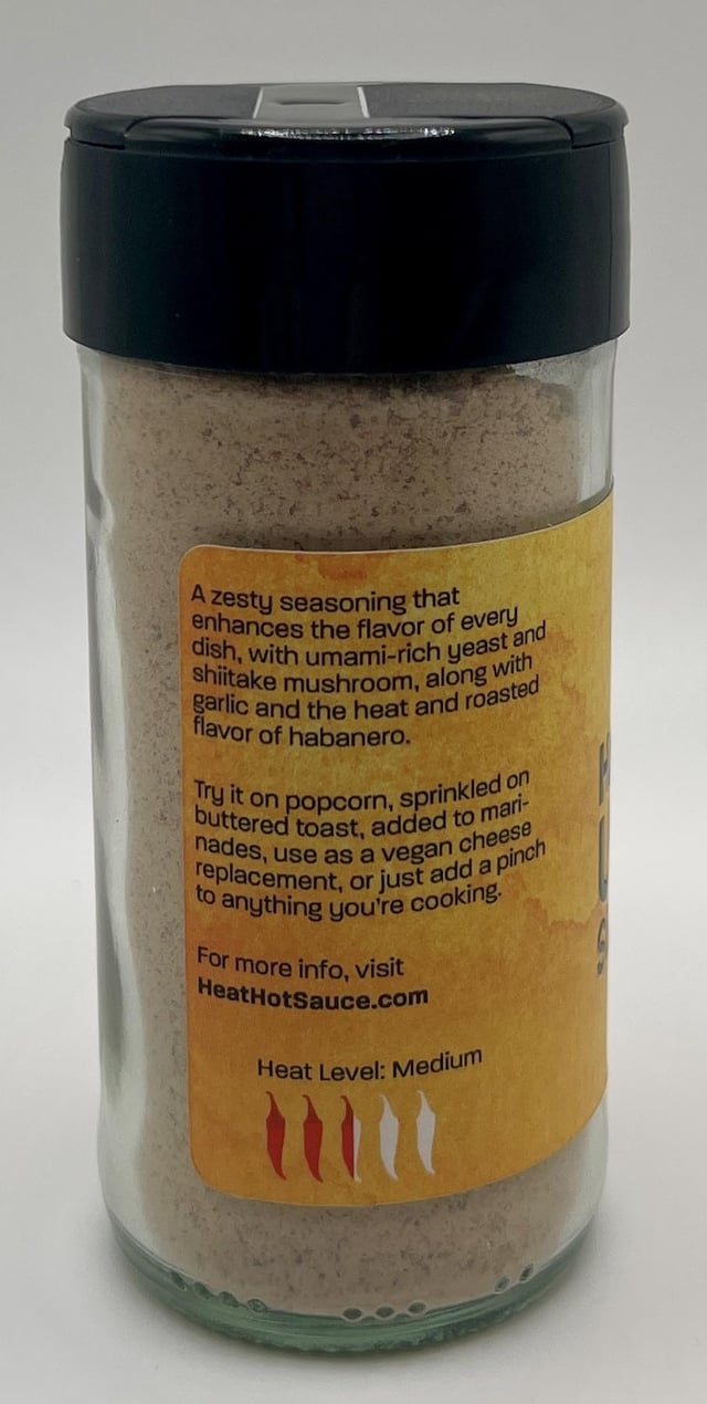 It’s a big umami bomb seasoning using yeast, dried shiitake, and garlic in addition to the habanero powder.