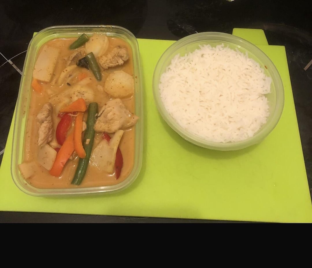 Homemade chicken red Thai curry and coconut rice. work lunch sorted for tomorrow. I hope the microwave police don’t get me.