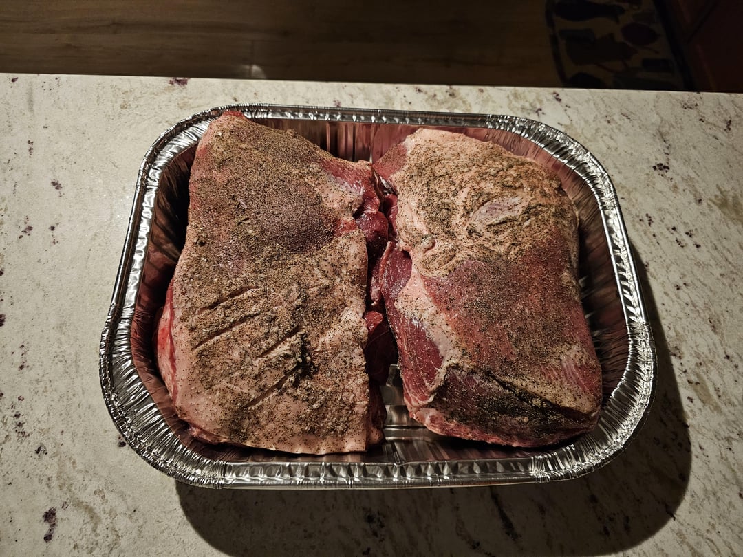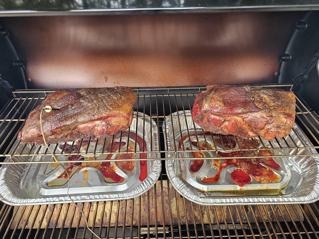 Nearly took 13 hours to get finished. I tried one no wrap and one in butcher paper. Definitely thinking butcher paper was better.