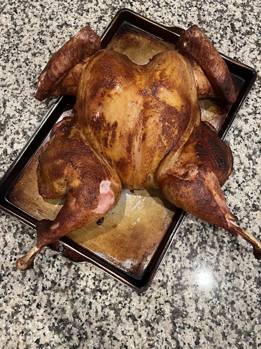Still new to this smoker thing (4 months) so I thought I would do a tester before Thanksgiving. Very pleased with how everything came out. Only issue was when I put the binder on (I used a maple butter mix) the bird was still cold and the butter solidified. I ended up throwing it on the smoker and let it warm up just a little then put on the rub. This will be the only way I do a bird for now on.