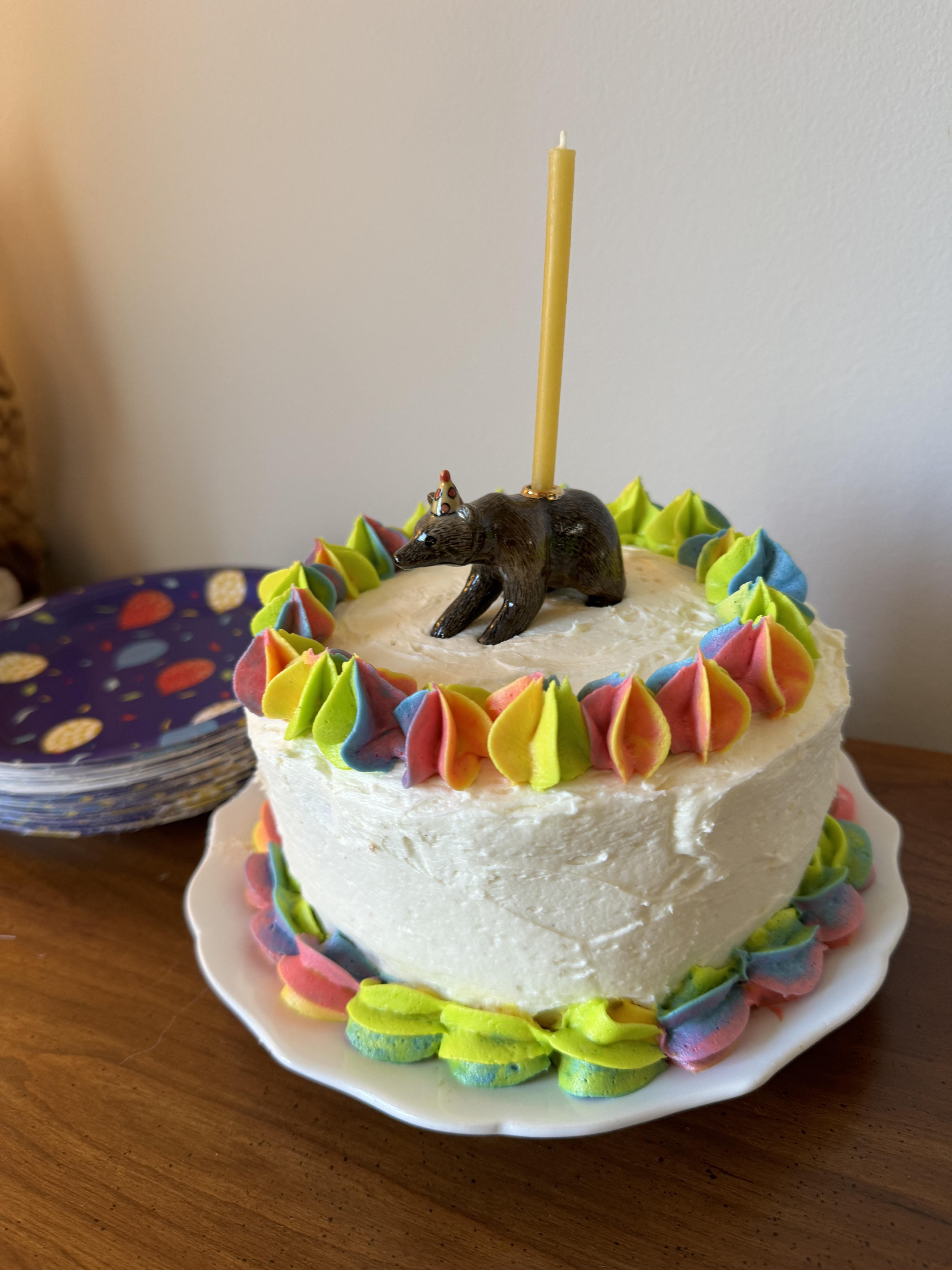 It’s not the most intricate or technical thing I’ve done, but I’m happy with it!by SmutWithClass 3 Comments Pumpernickel247 11 months ago I love it! Where did you get that cake topper? Therealladyboneyard 11 months ago This is so cute!! Felicity110 11 months ago Does candle go all through the bear to keep balance. How did you get rainbow colorsWrite A CommentYou must be logged in to post a comment.