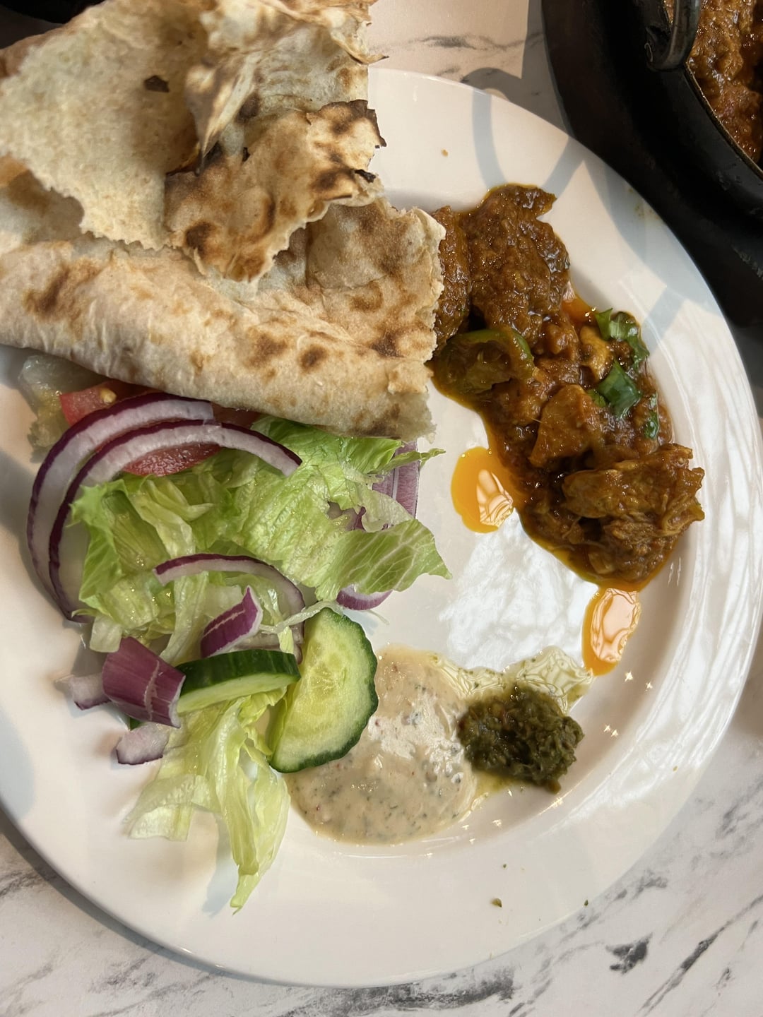 Lamb Karahi , Chicken Karahi Had 2, 10 inchtandoori rotis Then chutney and some sort of a jalapeño sauce What’s the calorie breakdown ?