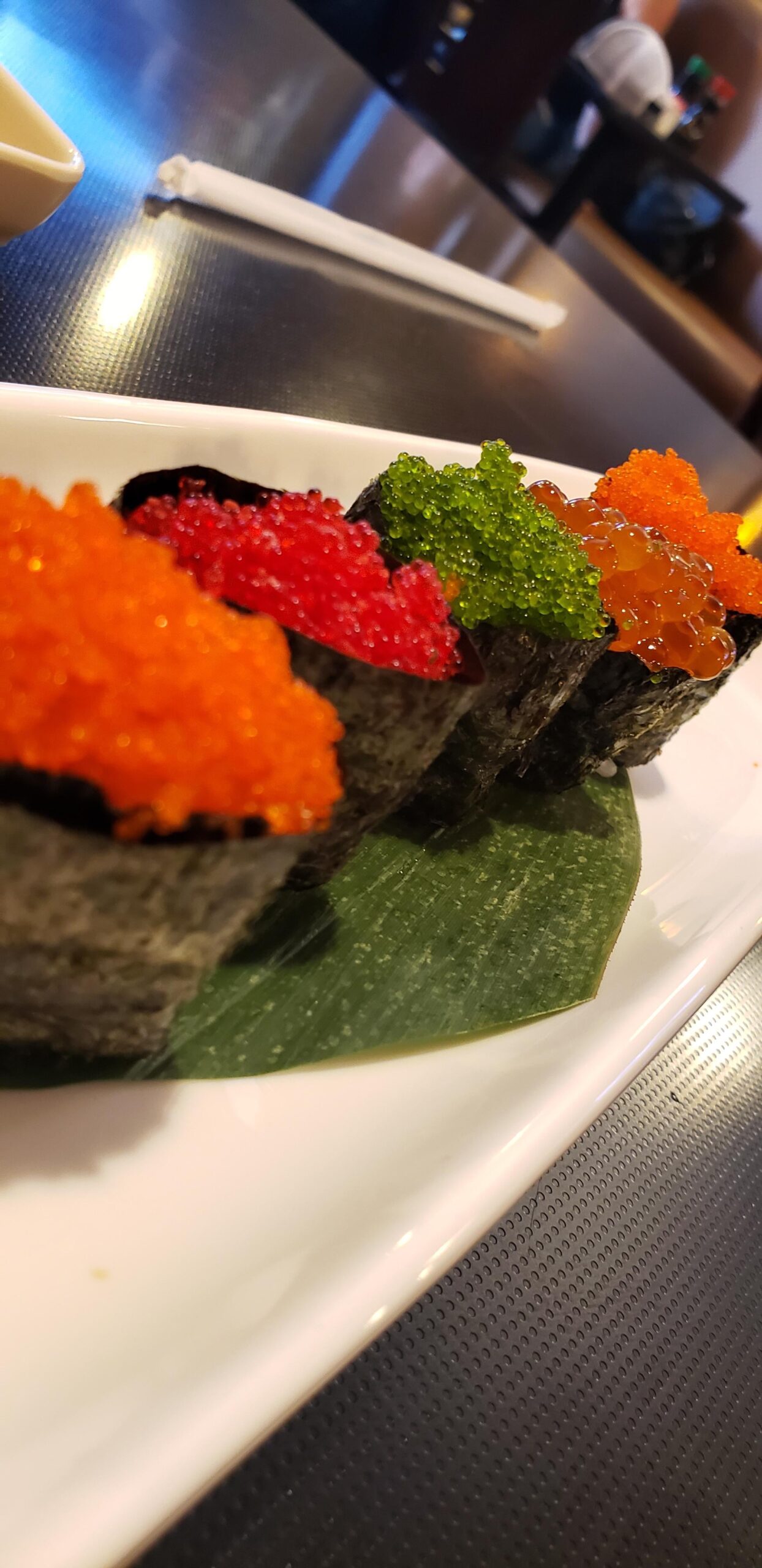 Egg flight! I’ve done this a few times (add temago to the end though) and it’s so much fun! The rice has to be really good imo, since non-flavored tobiko / masago is very mild tasting and bad rice easily shines through it. I really want to go to a restaurant with even more egg options and do an even bigger flight — shrimp eggs, uni (not exactly eggs but I want it), etc..