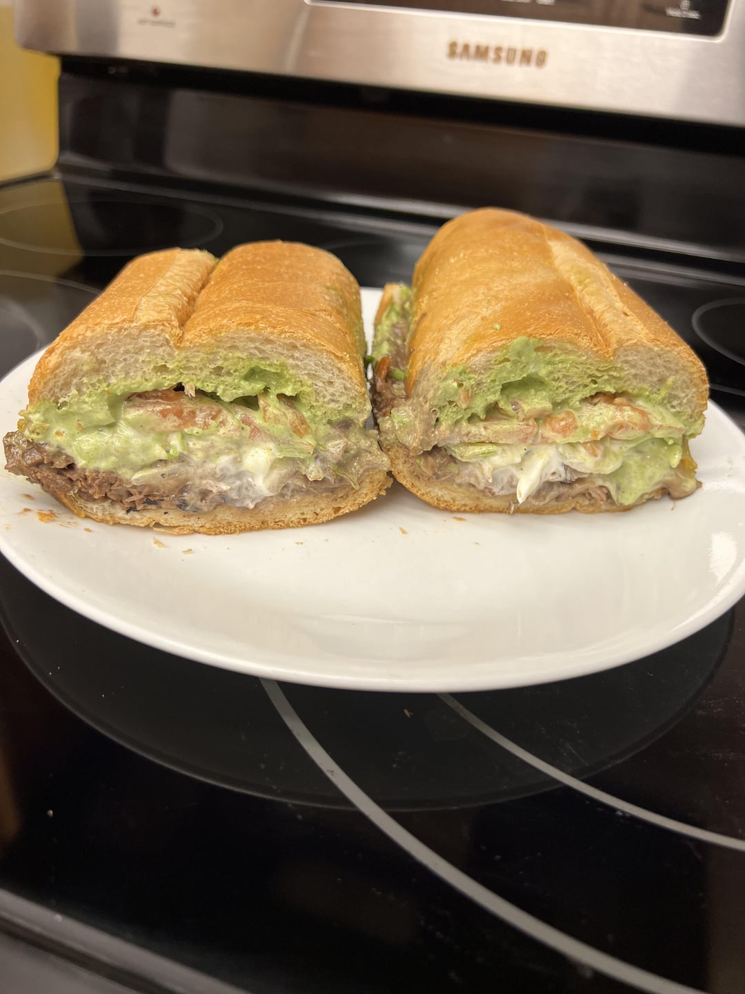 Chopped carne asada, chipotle refried black beans, carolina reaper jack cheese, lettuce, tomato, onion, cilantro garlic lime sauce and sour cream on cuban bread by _BOOMGOTTEM 5 Comments BeenzandRice 12 months ago ¡Órale! warm_sweater 12 months ago Oh hell yeah. SignificanceAny7485 12 months ago Chupa mi torta! That looks delicious ispy1917 12 months ago Looks amazing ProfessionalForce596 12 months ago It looks deliciousWrite A CommentYou must be logged in to post a comment.
