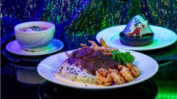 Appetizer: A choice of gumbo or sweet potato and lentil hummus (plant-based)Entrée: Steak frites ribeye and petite watercress salad served with a béarnaise sauce or any of the current Café Orleans entree offeringsDessert: Chocolate Decadence Tart made with dark chocolate coffee custard, chocolate chip cookie crust, and topped with a mousse rock and Mickey decoration