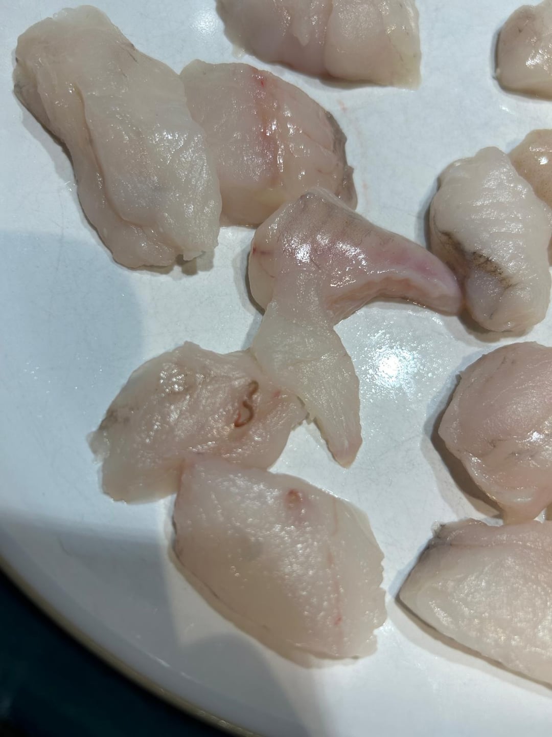 Just a note that monkfish are one of the more parasite-laden fish out there. Bottom-dwellers like this tend to accumulate a lot of stuff in them.