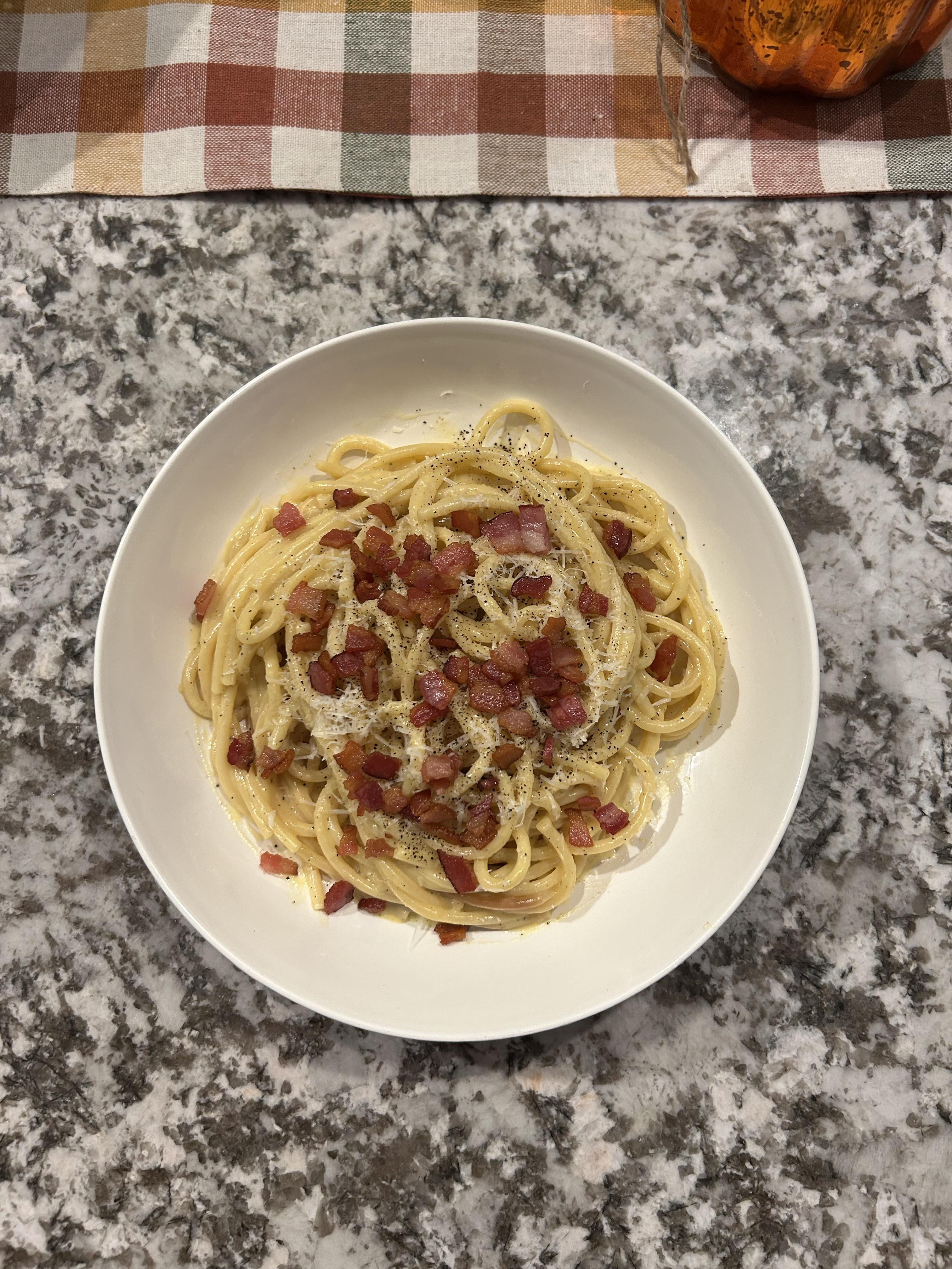 Not authentic, I couldn’t find Guanciale so I substituted with an extra thick cut smoked bacon, sauce came out pretty good imo (I used a double boiler for easier temp control), any tips???by sb_cooch 1 Comment DarkArcher__ 11 months ago It looks deliciousWrite A CommentYou must be logged in to post a comment.