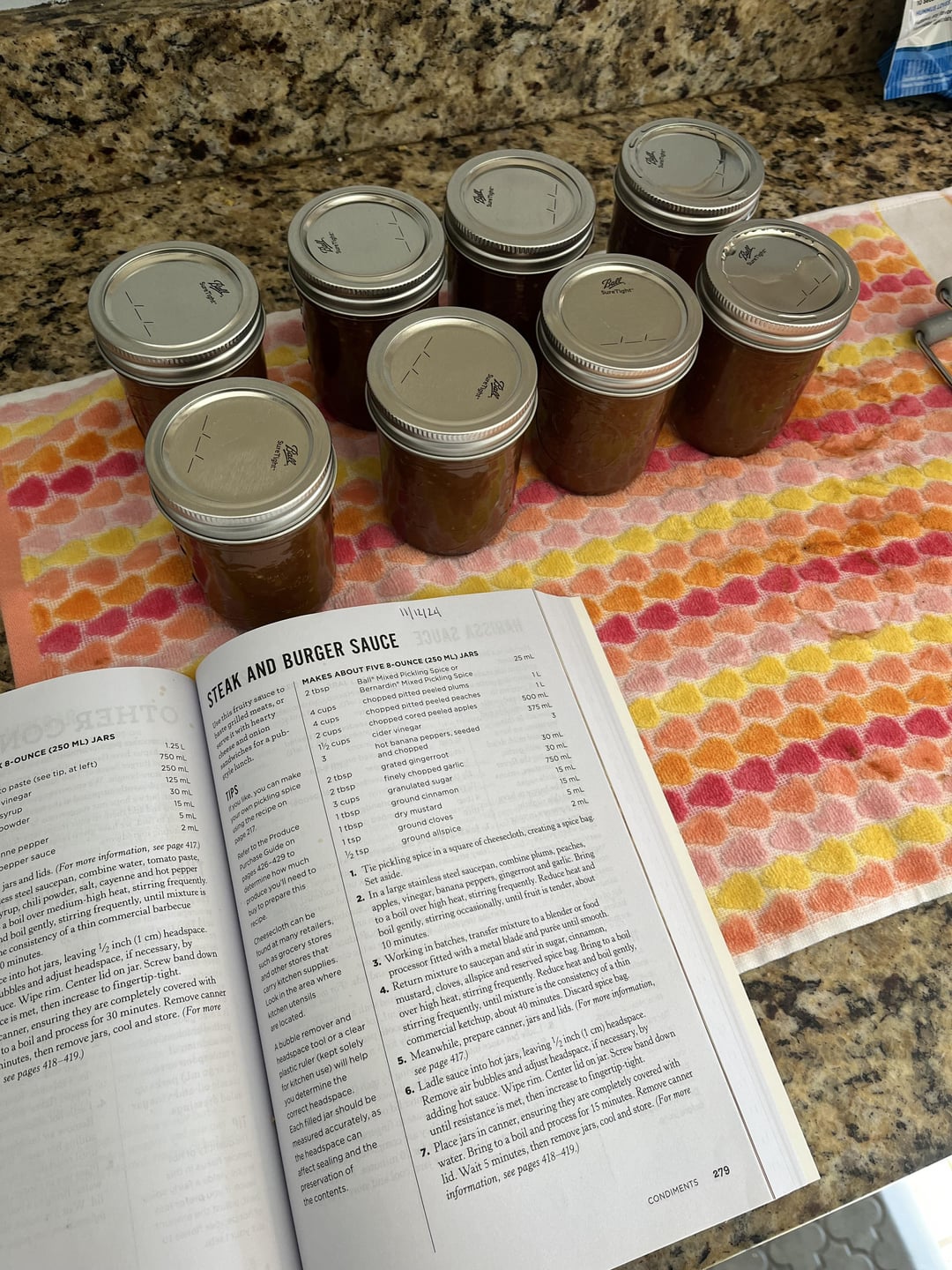 Decided I would do some canning for holiday gifts this year and started today with the Steak and Burger Sauce recipe from Ball’s Complete Book of Home Preserving book. The recipe says I should have made 5 8-oz jars, and I ended up with 8 and a half (did not process that one, went into the fridge). Anyone else have this experience where it makes way more? Not complaining at all, just want to know if I should anticipate this.